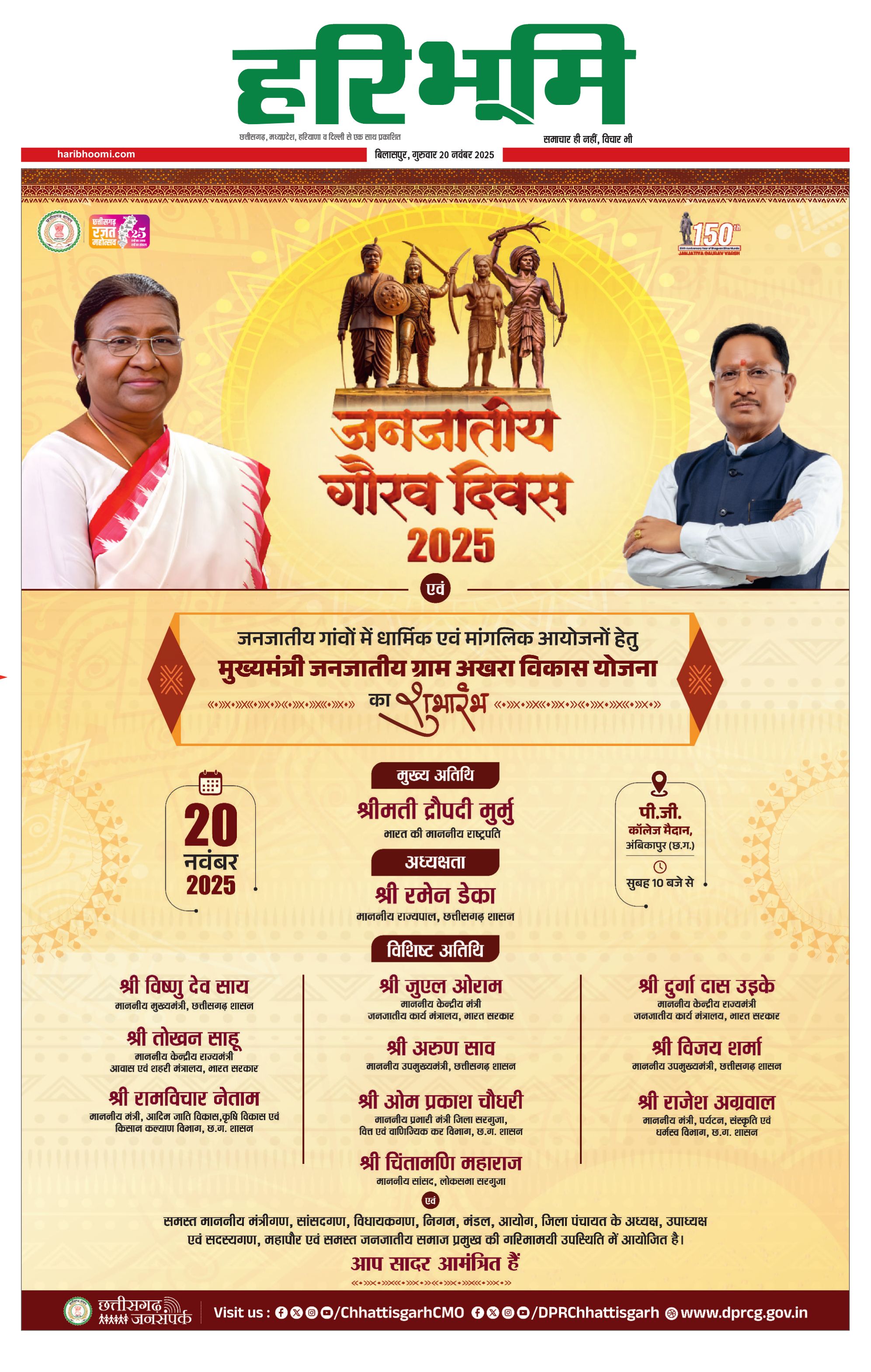 बिलासपुर मुख्य संस्करण - 20 Nov 2025 - - Page 1