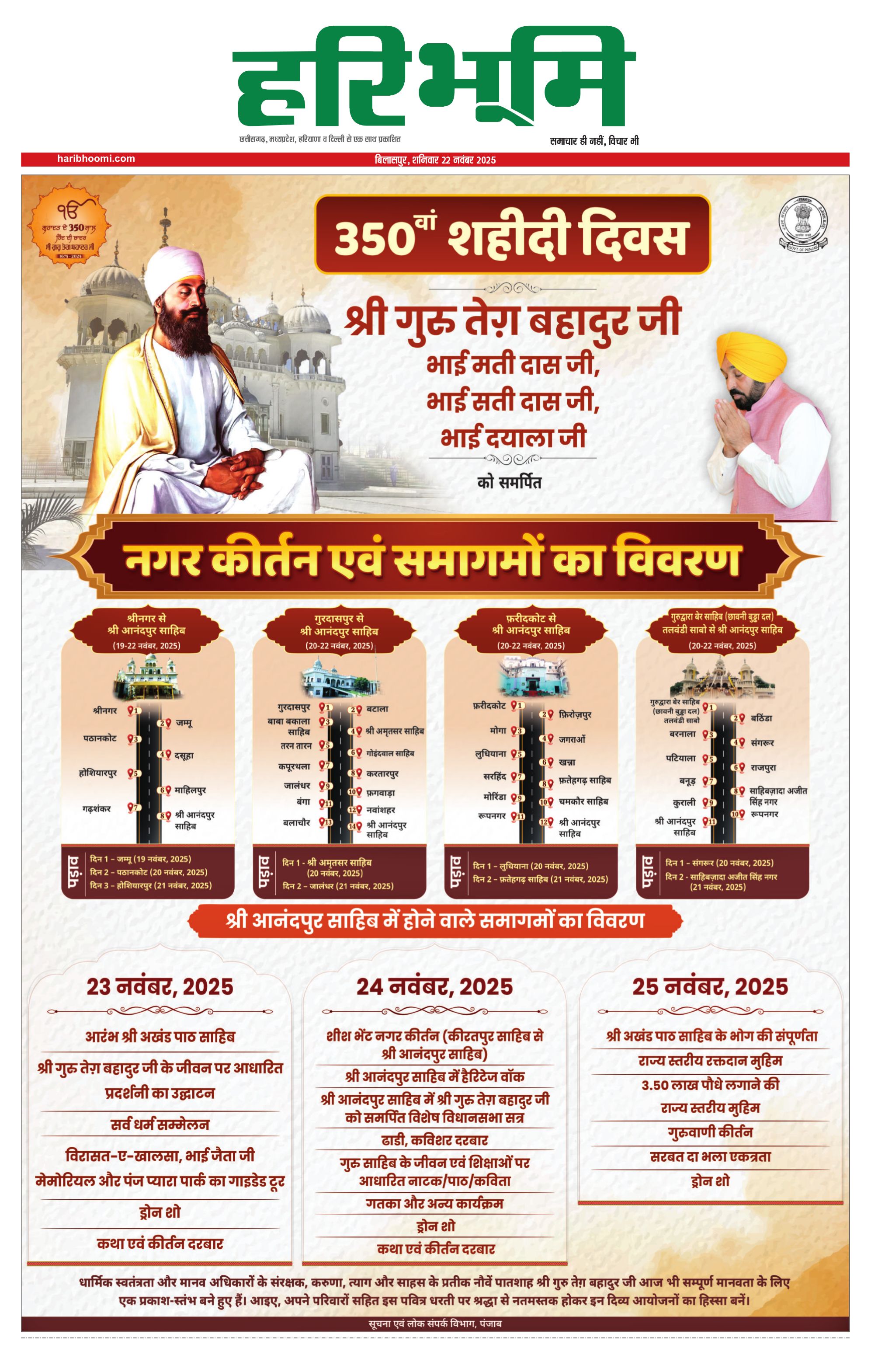 बिलासपुर मुख्य संस्करण - 22 Nov 2025 - - Page 1