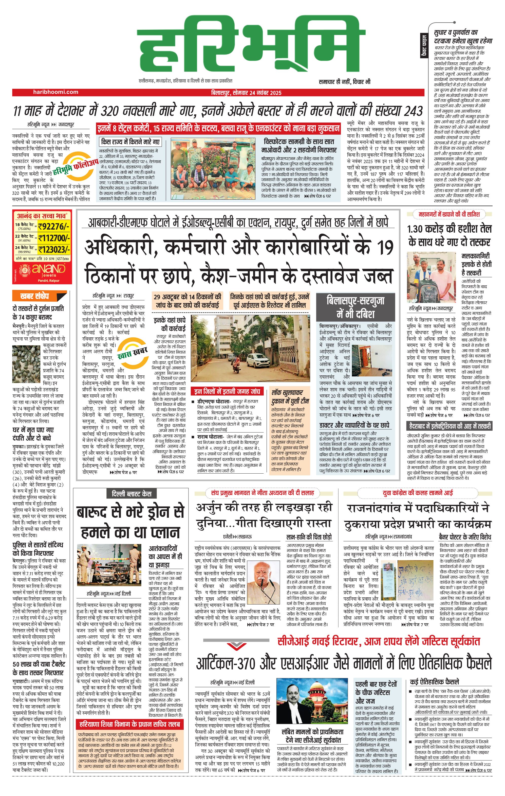 बिलासपुर मुख्य संस्करण - 24 Nov 2025 - - Page 1