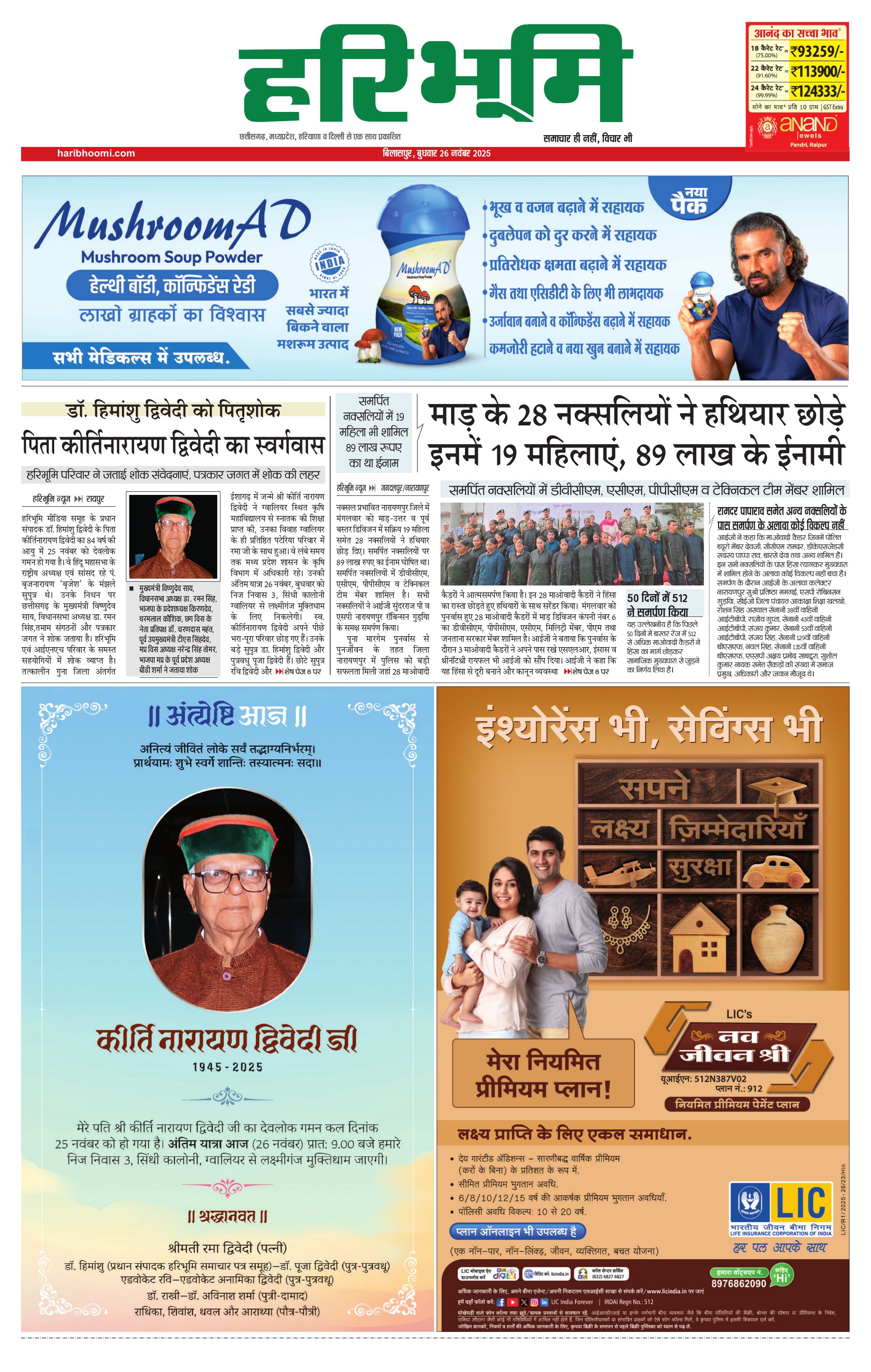 बिलासपुर मुख्य संस्करण - 26 Nov 2025 - - Page 1
