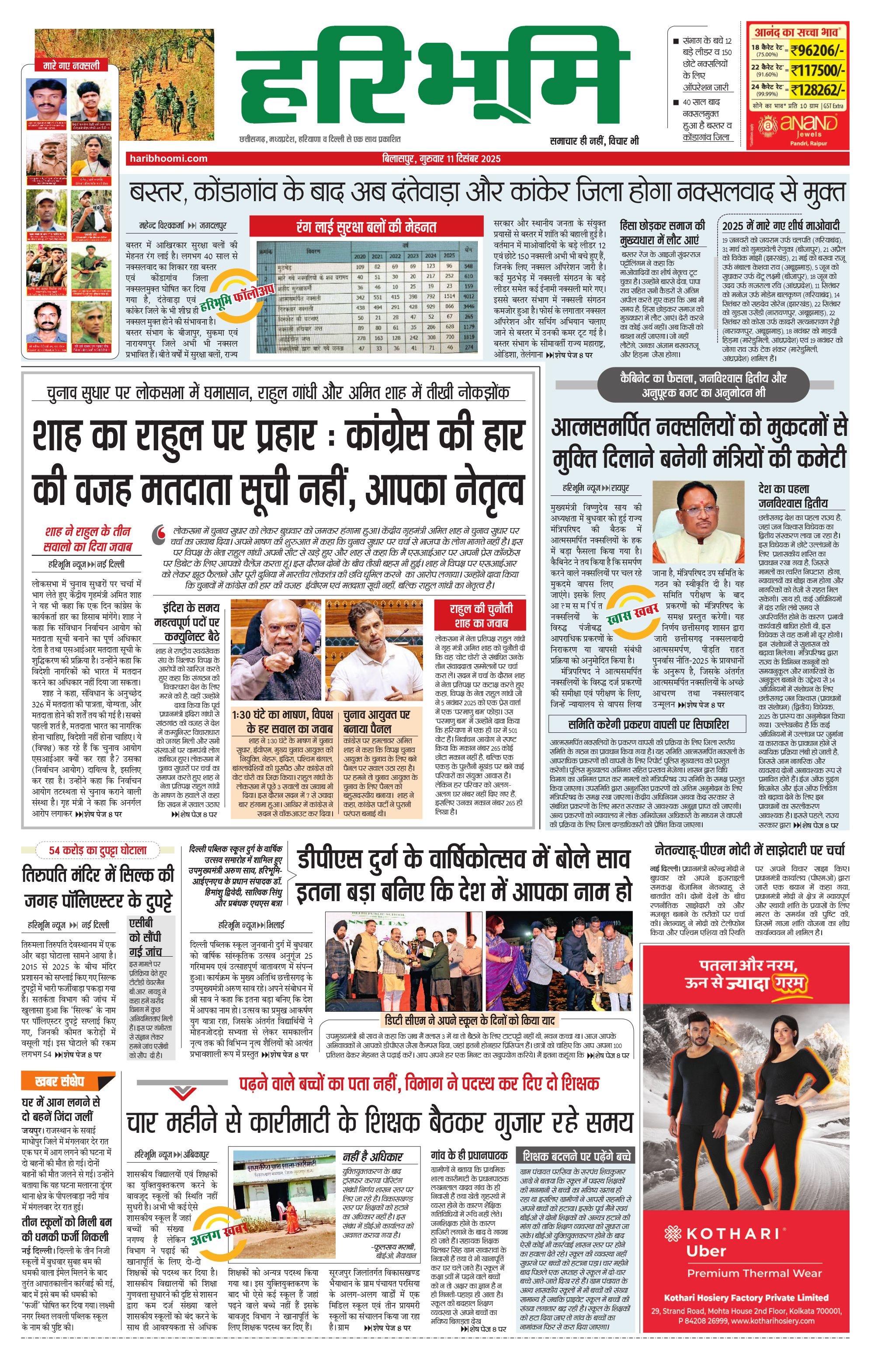 बिलासपुर मुख्य संस्करण - 11 Dec 2025 - - Page 1