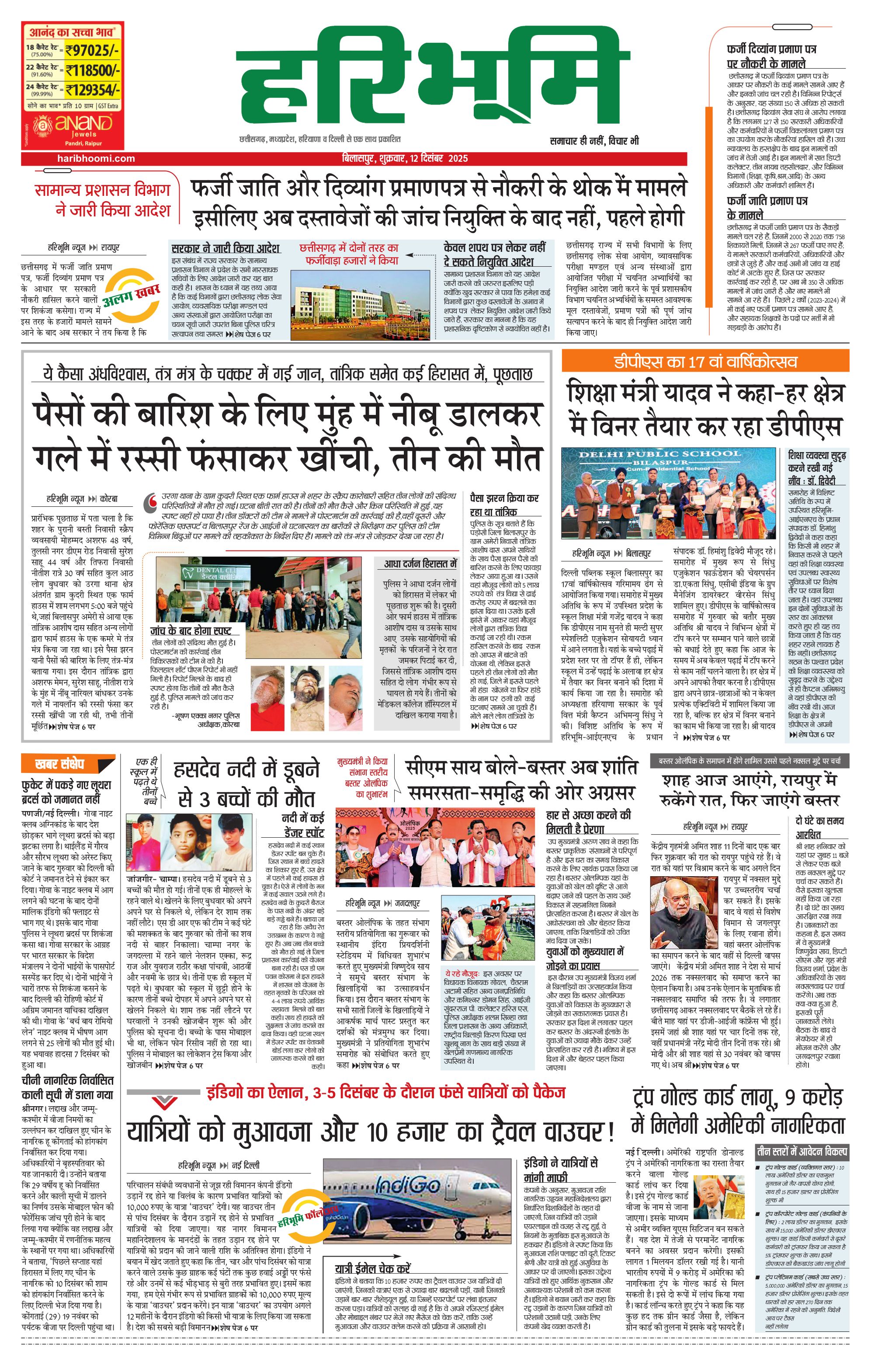 बिलासपुर मुख्य संस्करण - 12 Dec 2025 - - Page 1