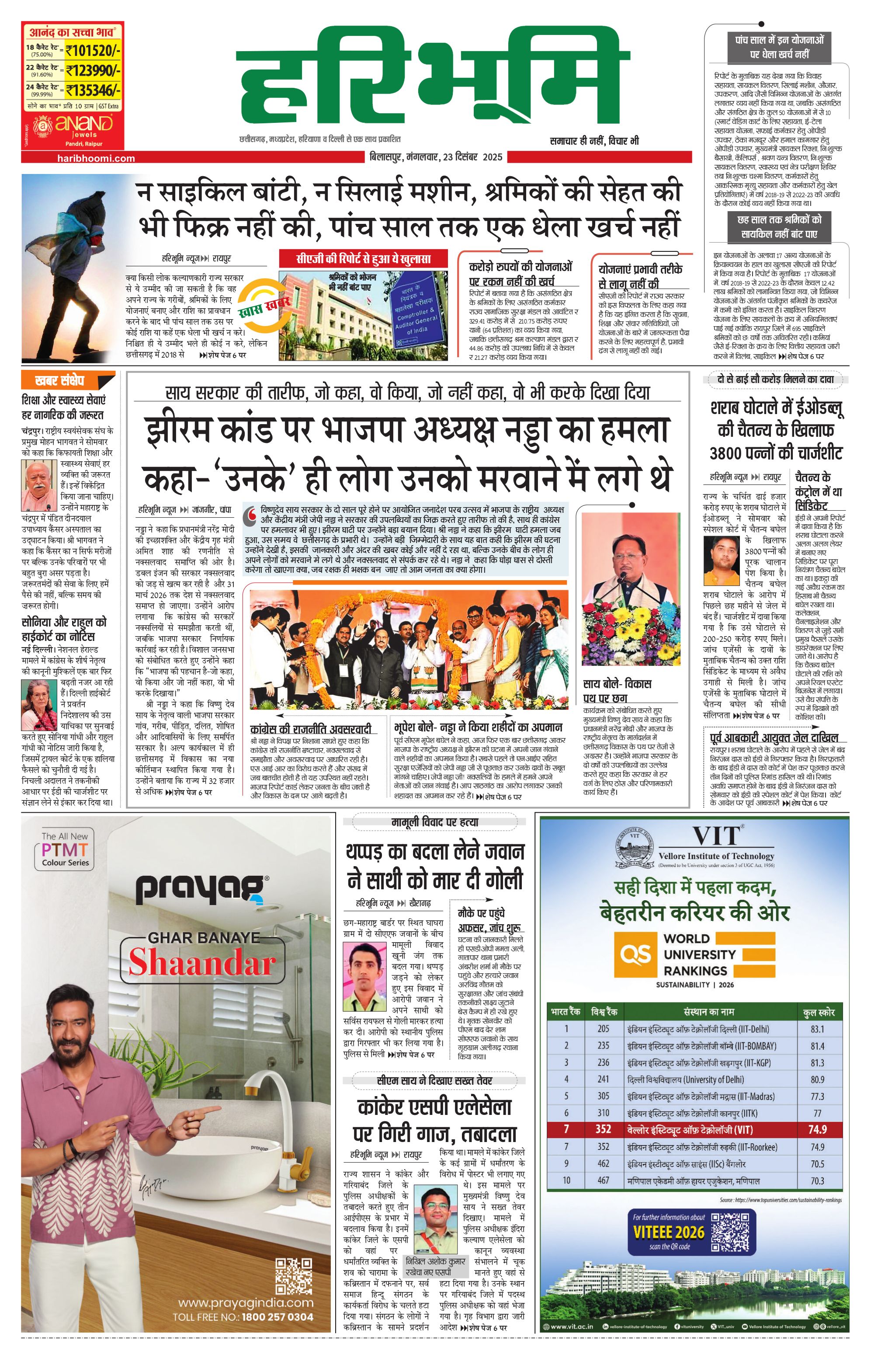 बिलासपुर मुख्य संस्करण - 23 Dec 2025 - - Page 1