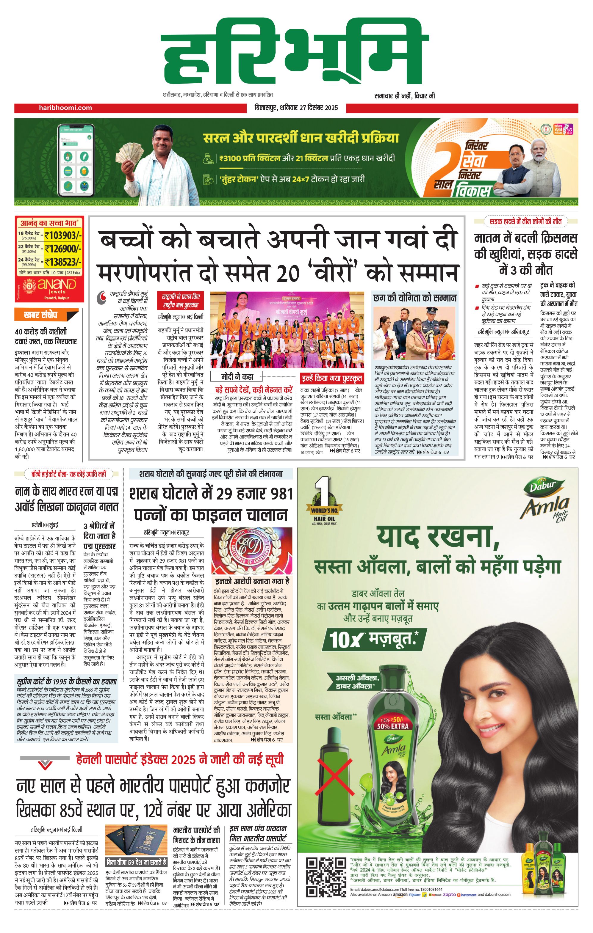 बिलासपुर मुख्य संस्करण - 27 Dec 2025 - - Page 1