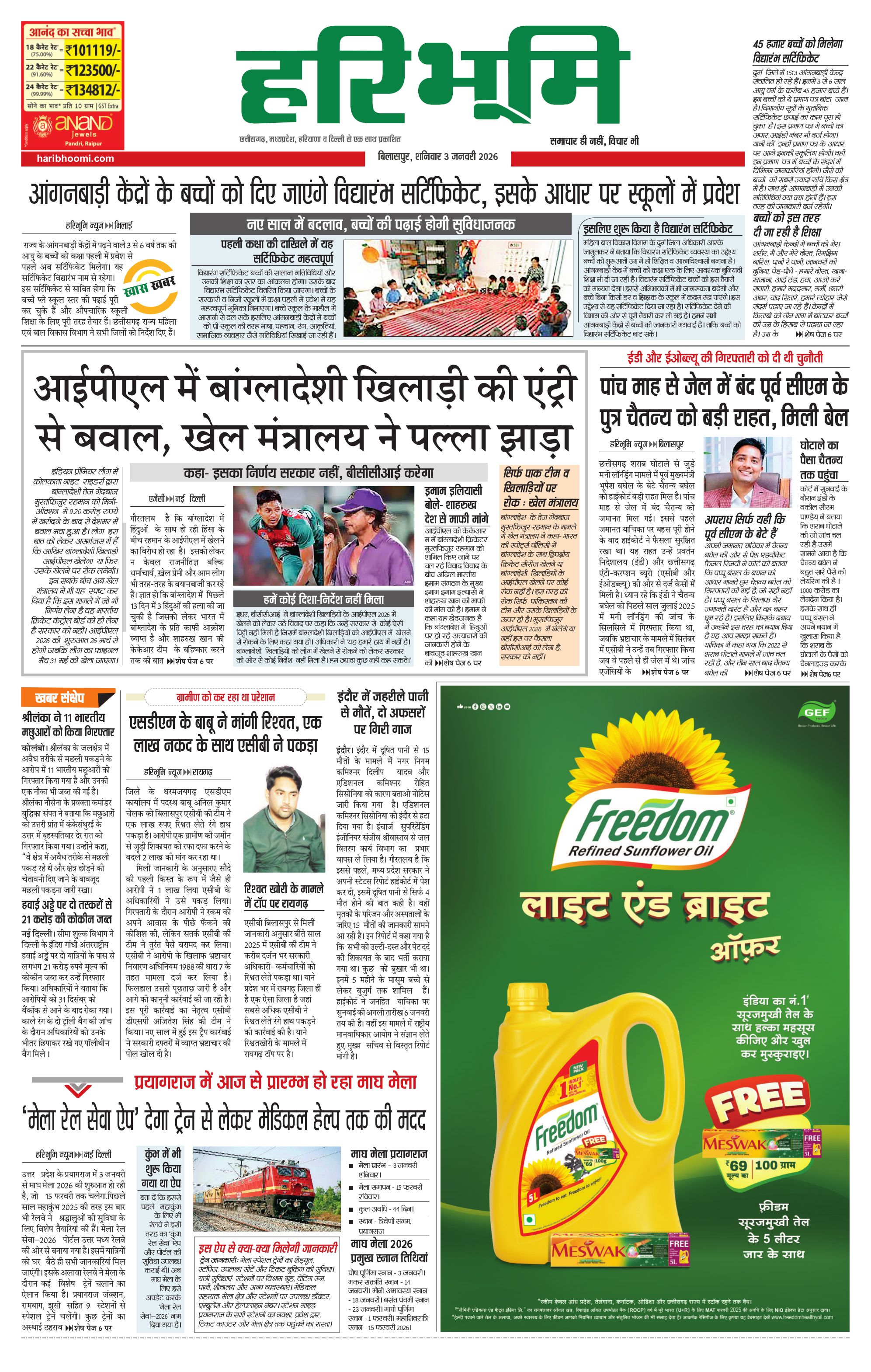 बिलासपुर मुख्य संस्करण - 03 Jan 2026 - - Page 1