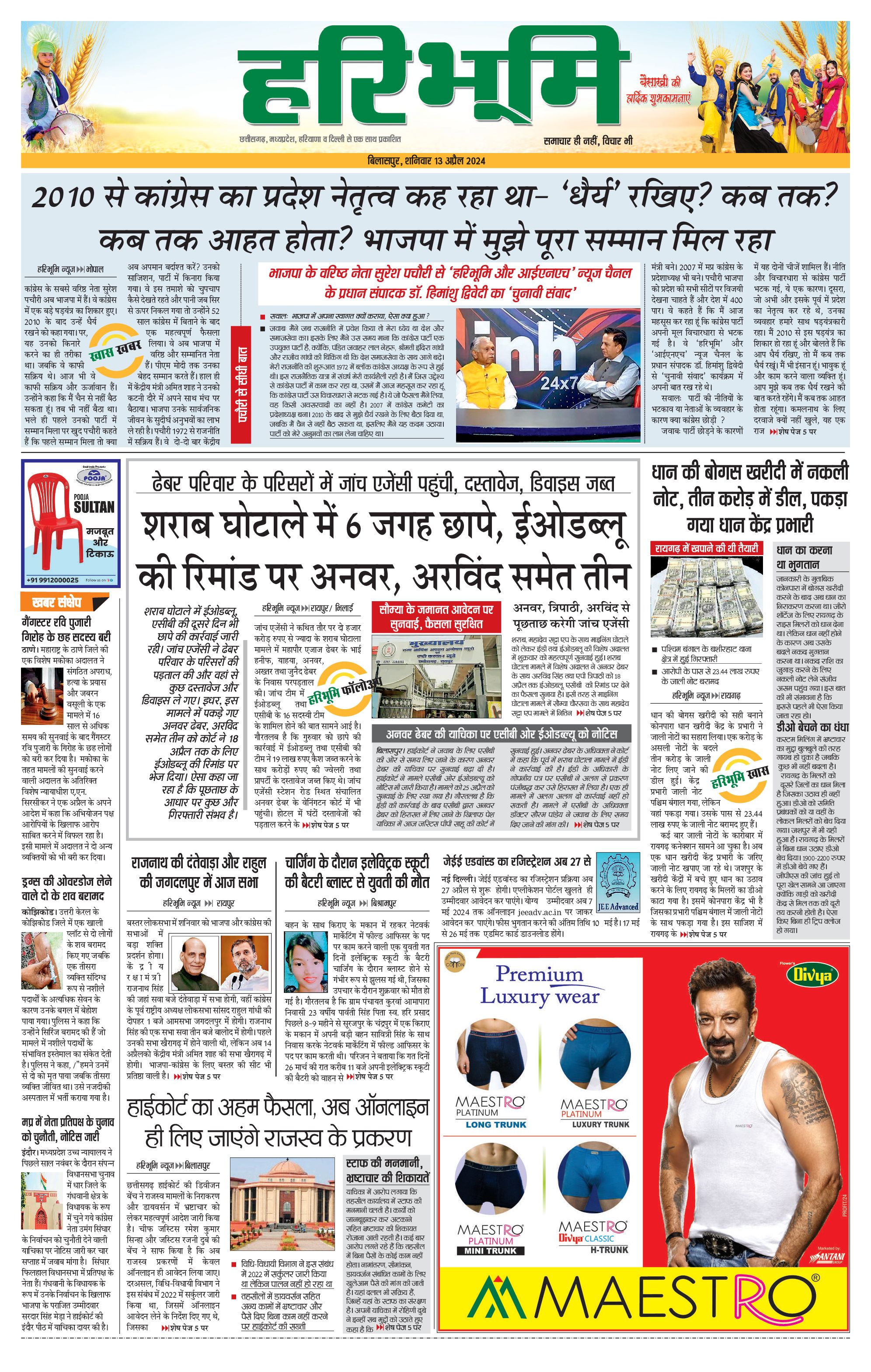 बिलासपुर मुख्य संस्करण - 13 Apr 2024 - - Page 1