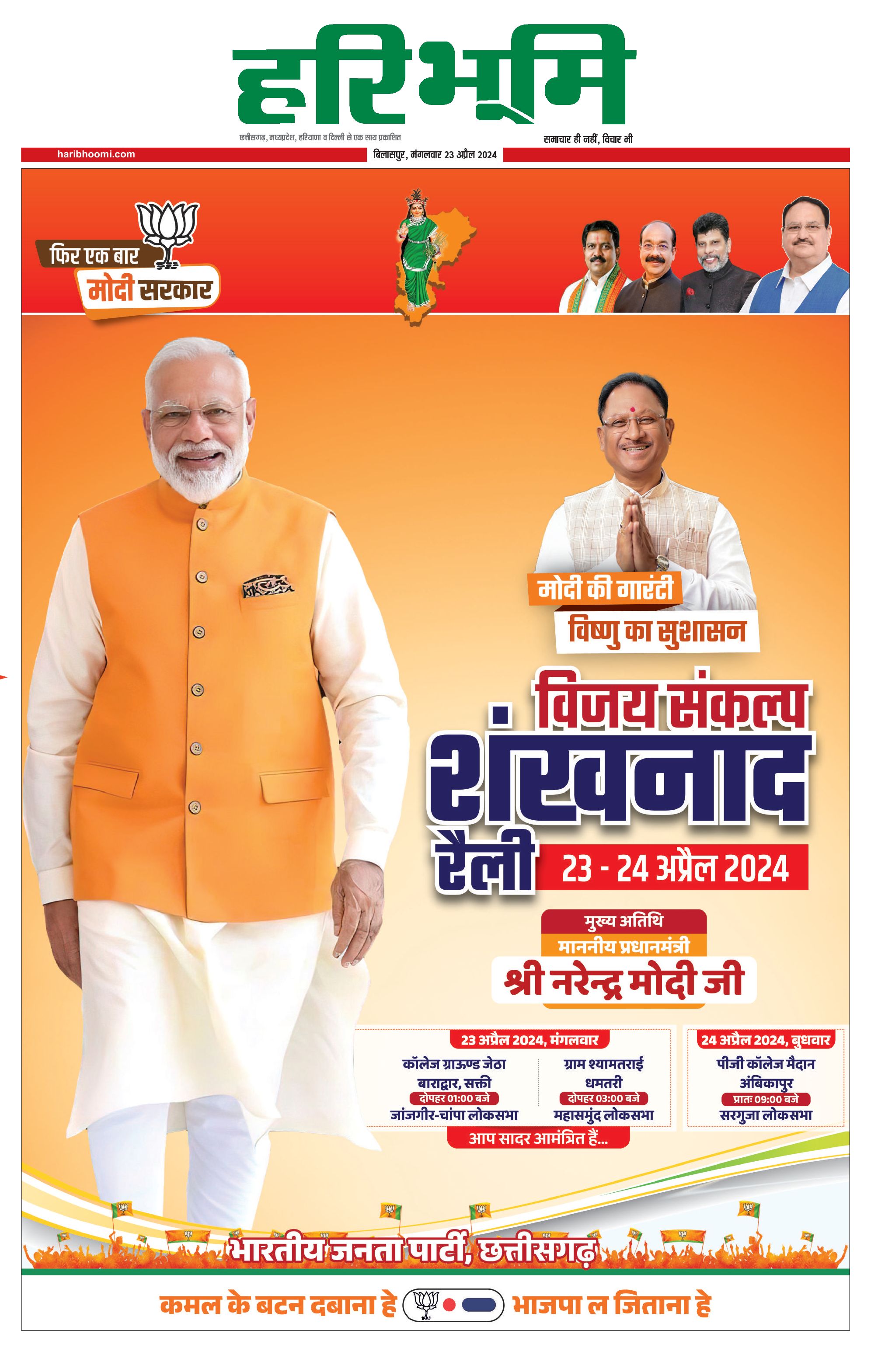 बिलासपुर मुख्य संस्करण - 23 Apr 2024 - - Page 1