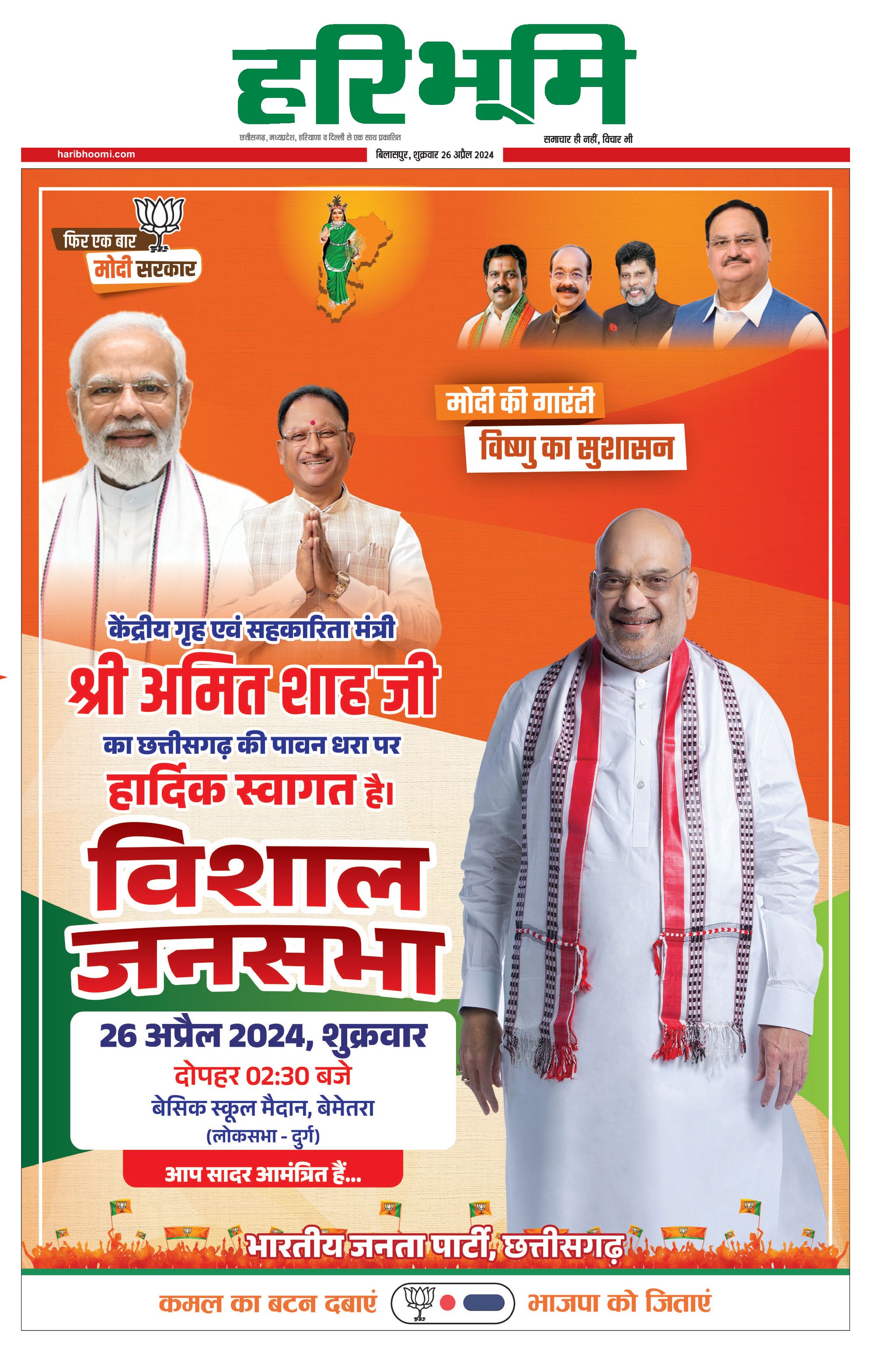 बिलासपुर मुख्य संस्करण - 26 Apr 2024 - - Page 1