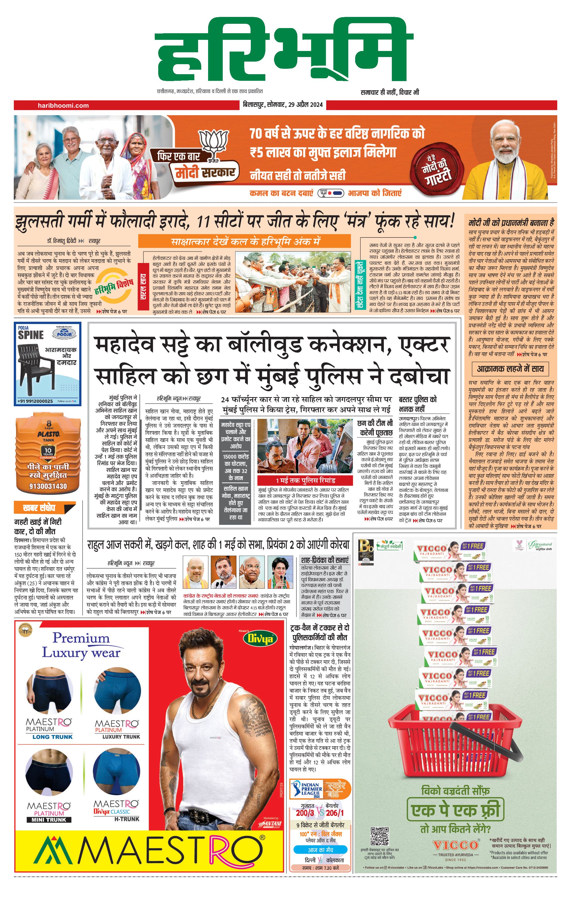 बिलासपुर मुख्य संस्करण - 29 Apr 2024 - - Page 1
