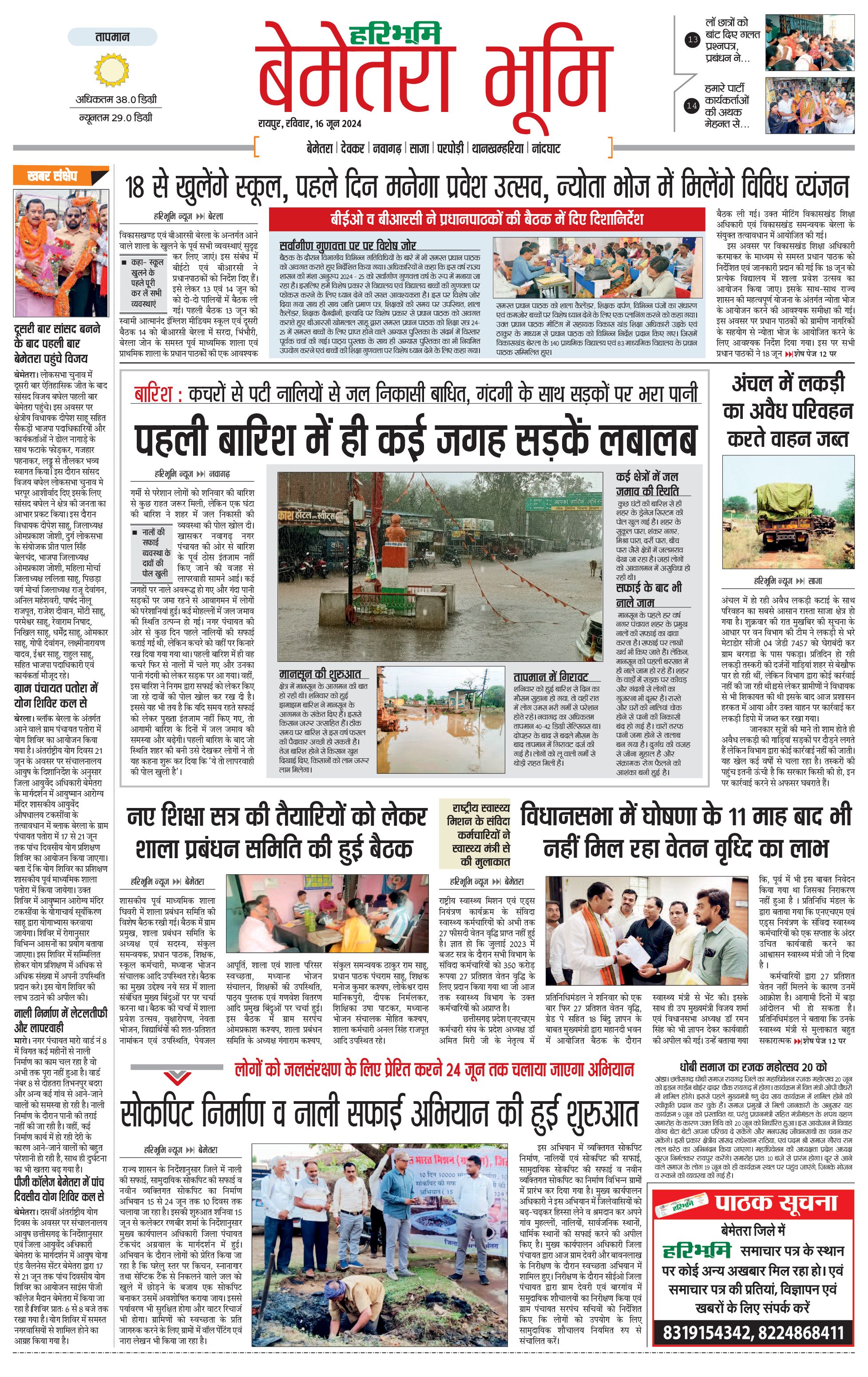 बेमेतरा भूमि - 16 Jun 2024 - - Page 1