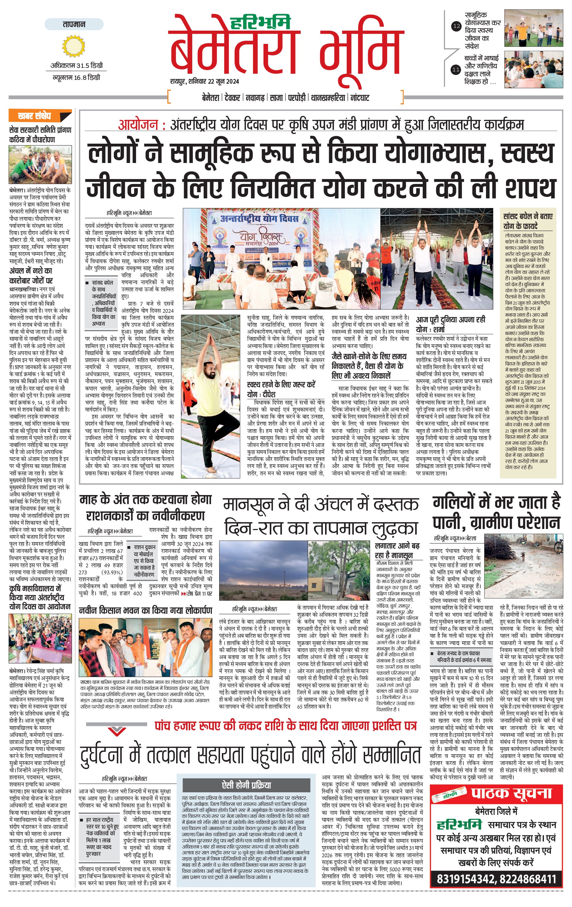 बेमेतरा भूमि - 22 Jun 2024 - - Page 1