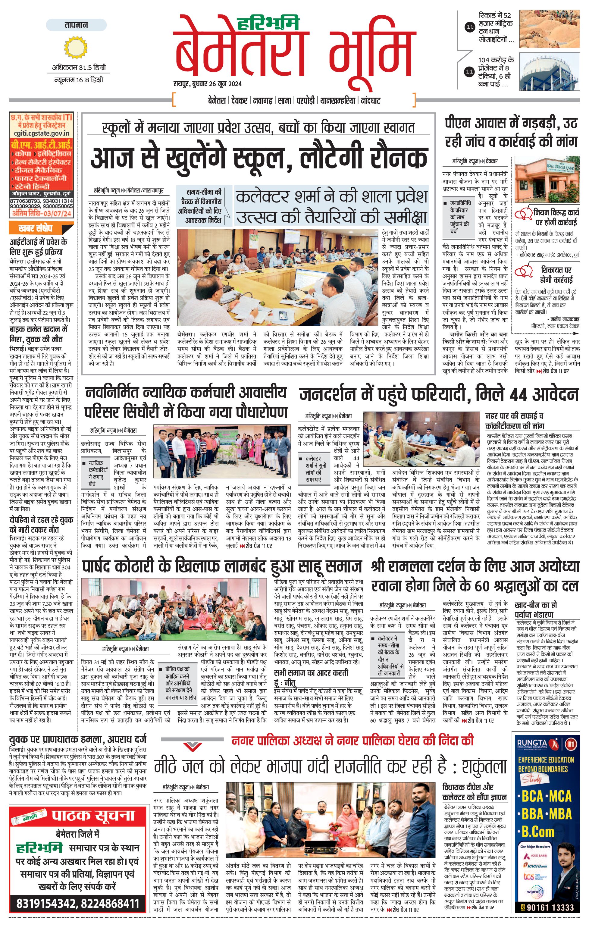 बेमेतरा भूमि - 26 Jun 2024 - - Page 1