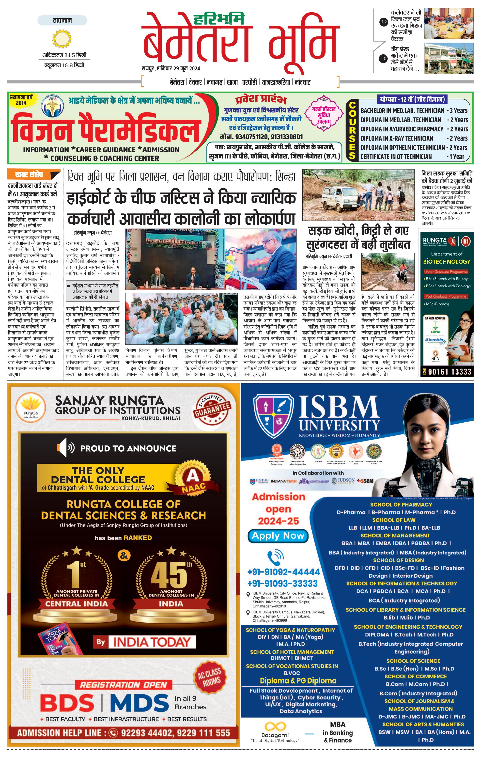 बेमेतरा भूमि - 29 Jun 2024 - - Page 1