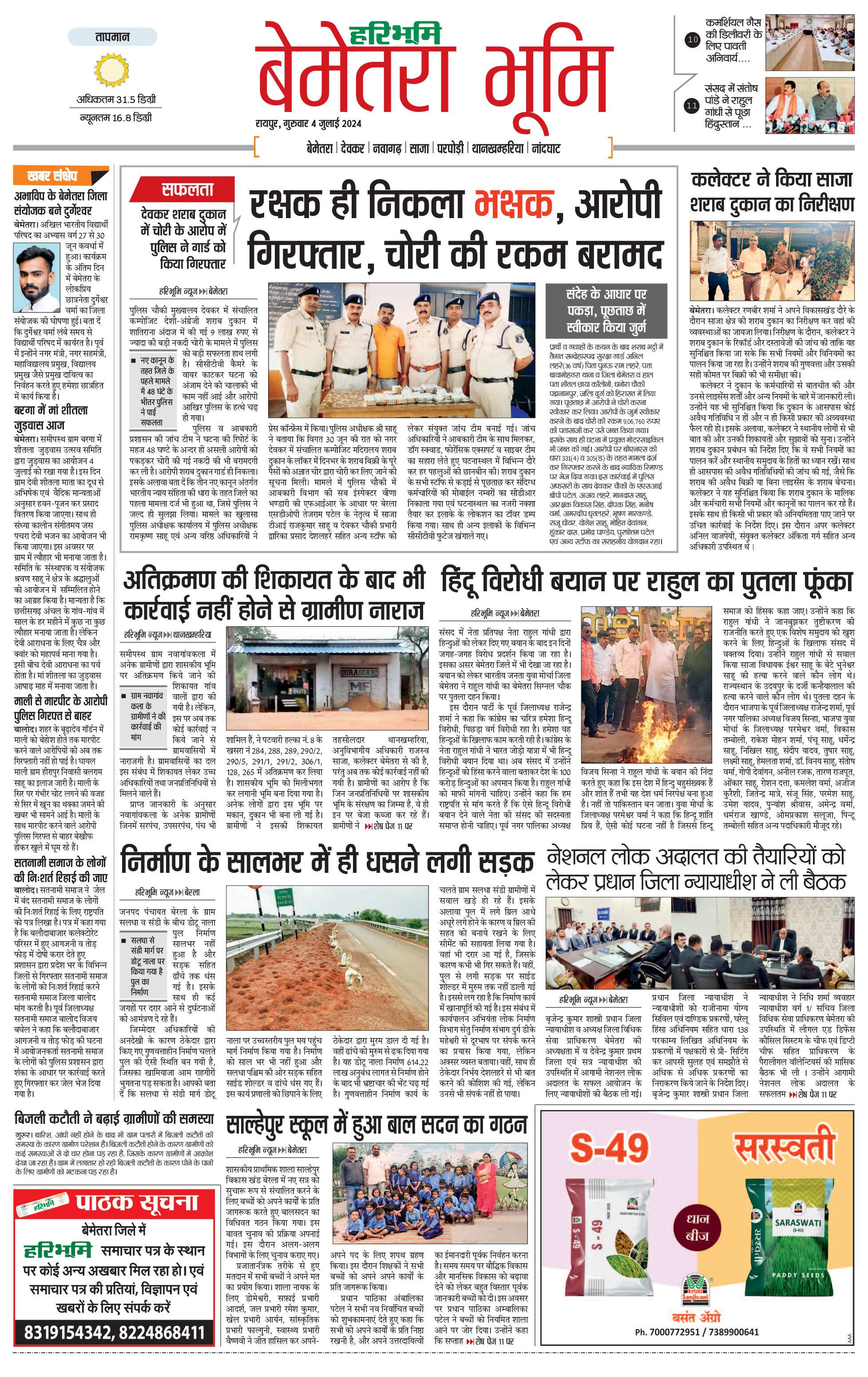 बेमेतरा भूमि - 04 Jul 2024 - - Page 1