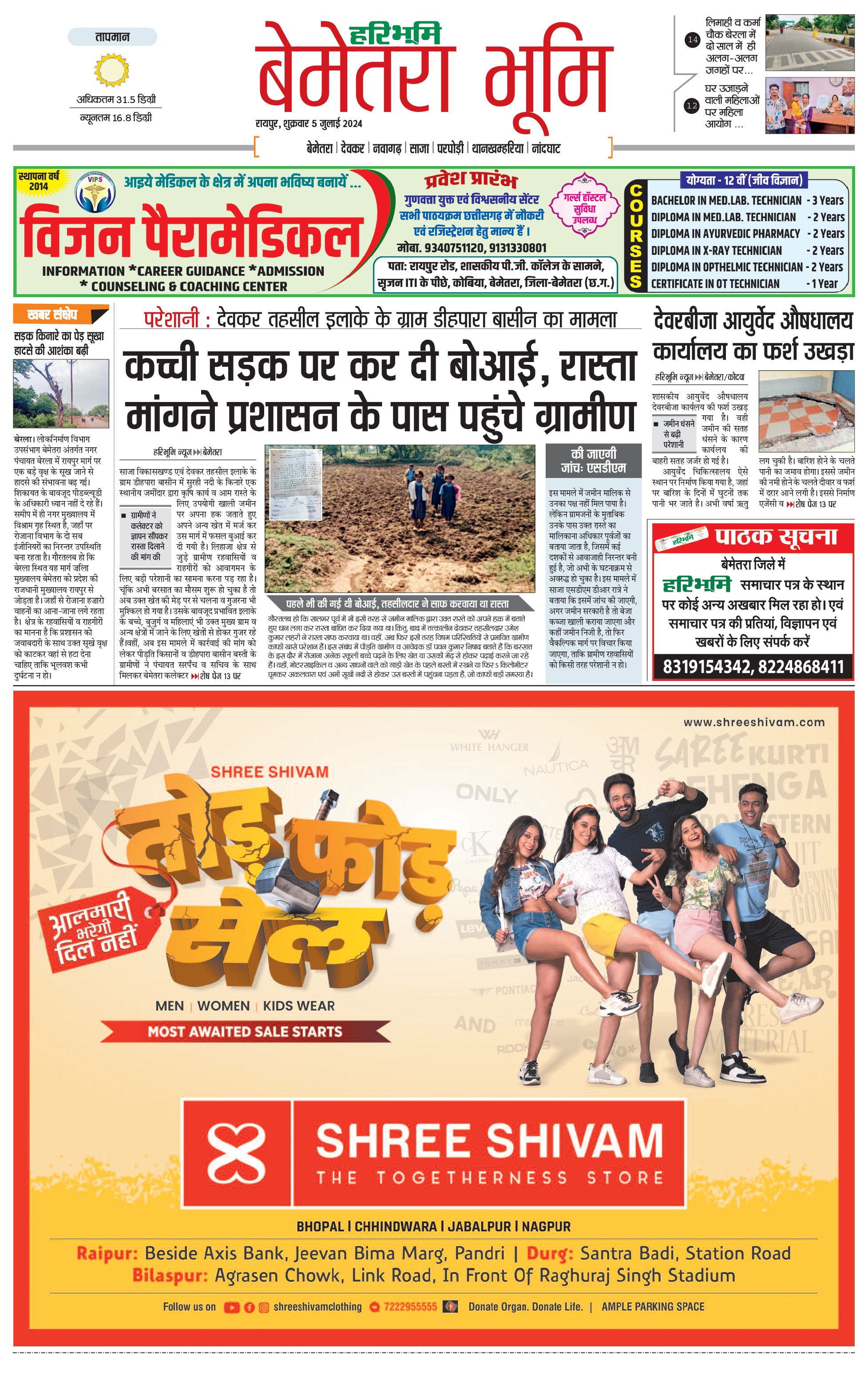 बेमेतरा भूमि - 05 Jul 2024 - - Page 1