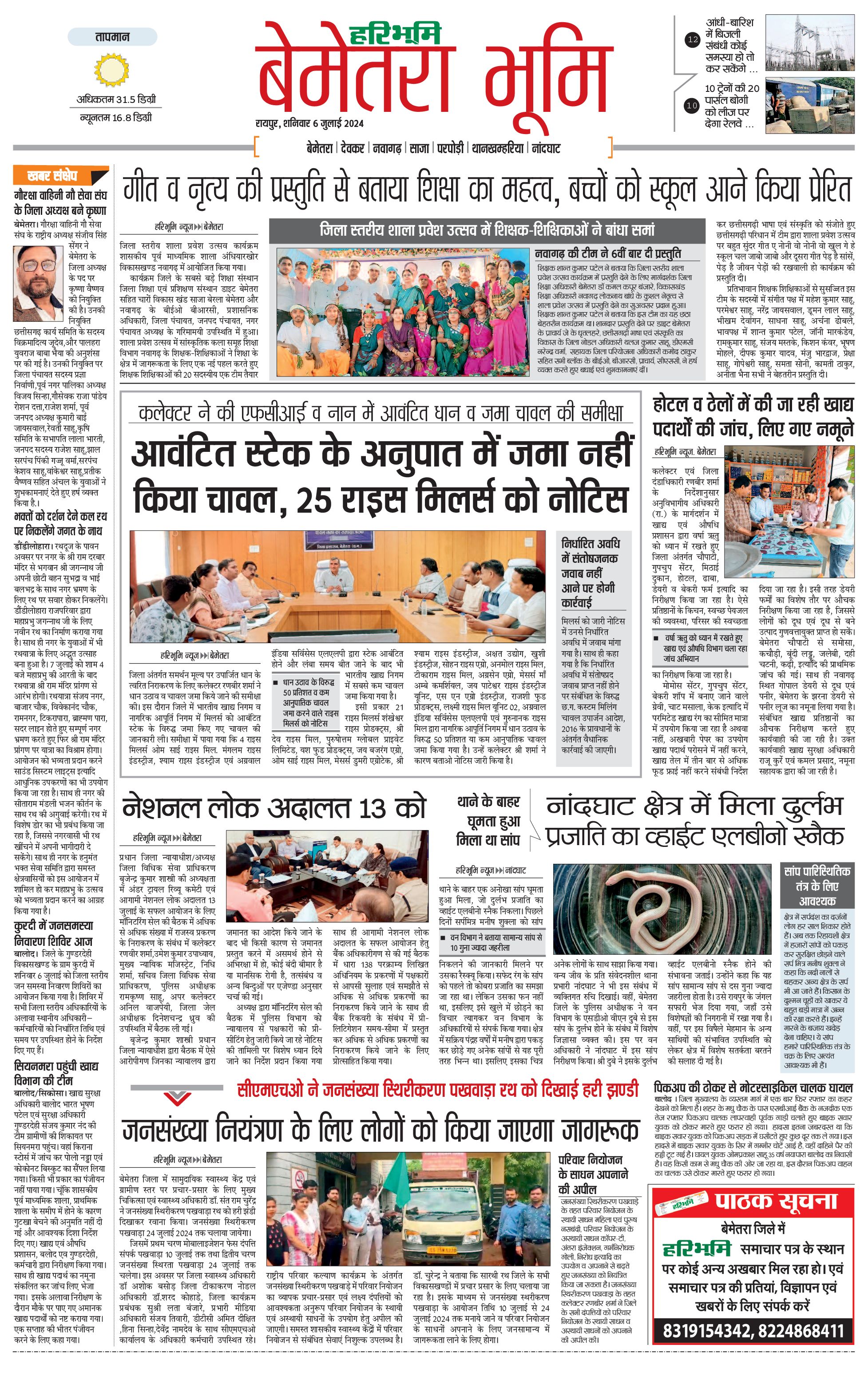 बेमेतरा भूमि - 06 Jul 2024 - - Page 1