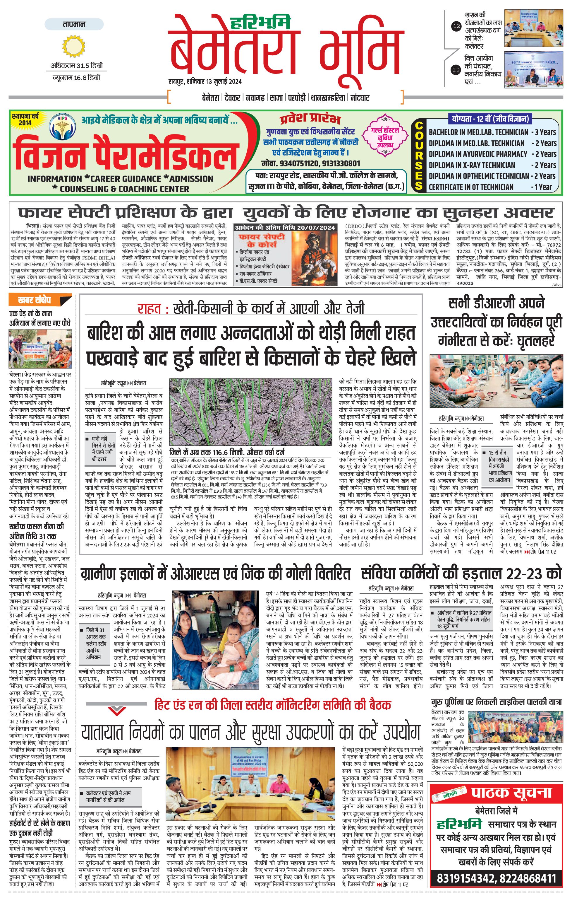 बेमेतरा भूमि - 13 Jul 2024 - - Page 1