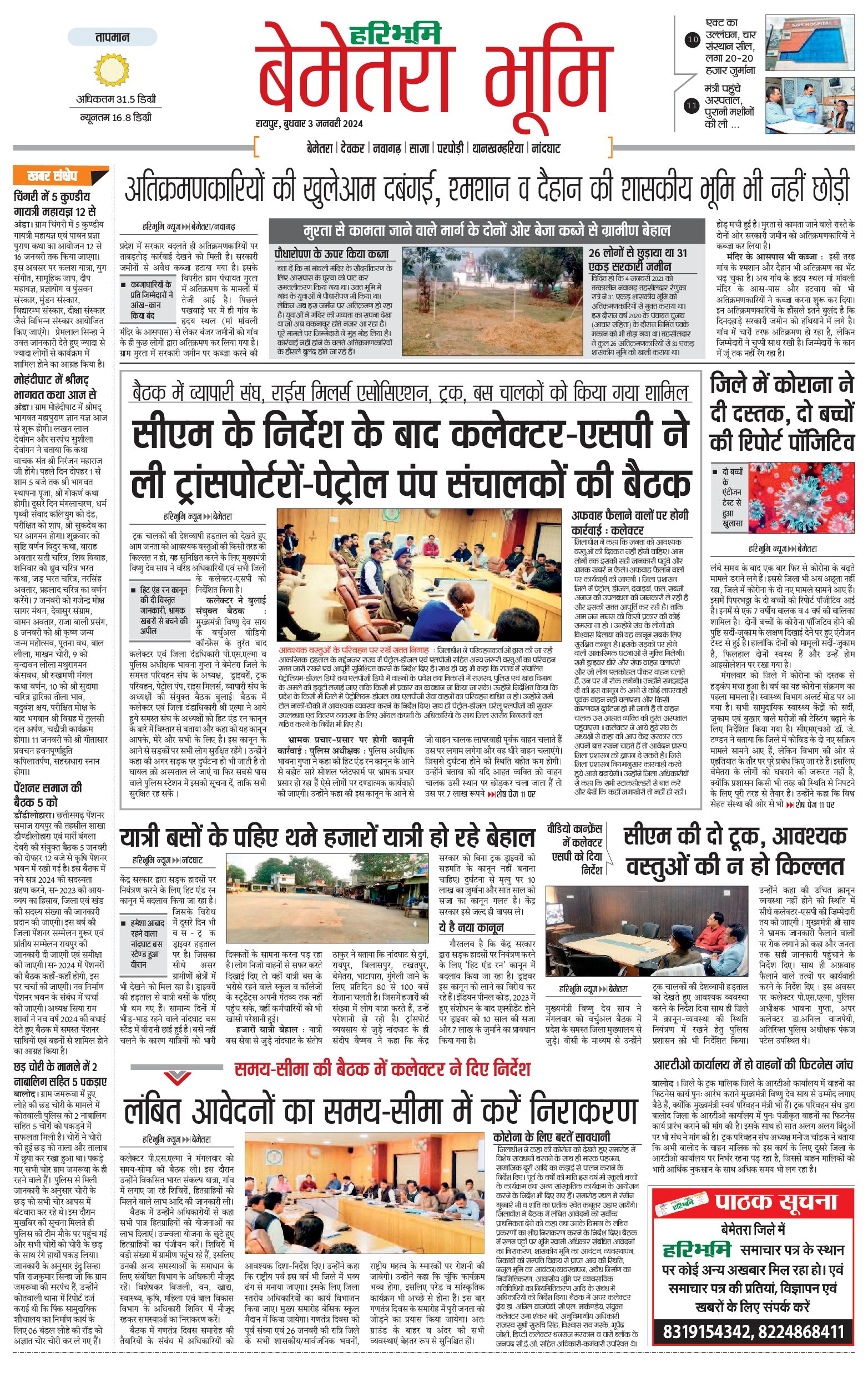 बेमेतरा भूमि - 03 Jan 2024 - - Page 1