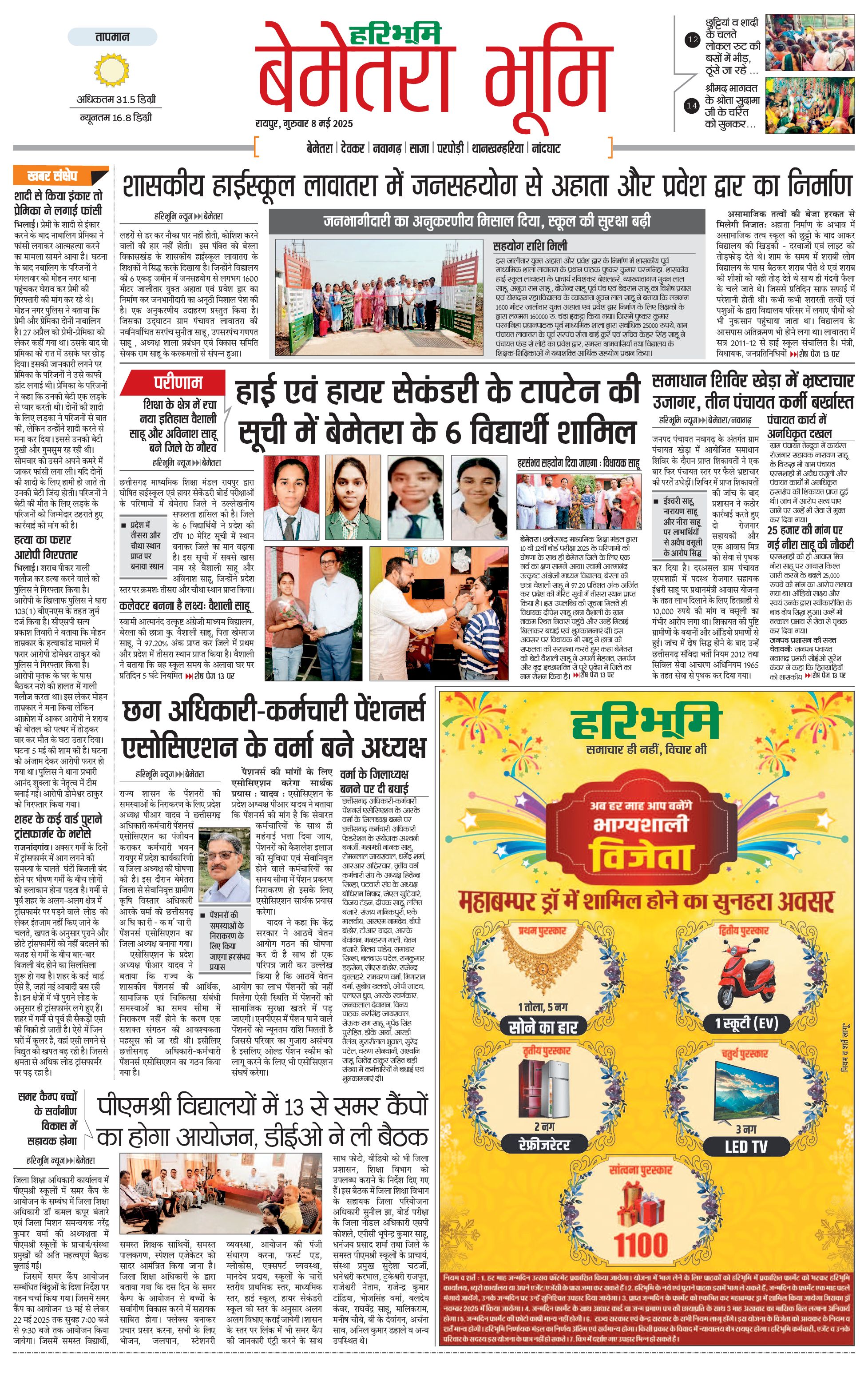 बेमेतरा भूमि - 08 May 2025 - - Page 1