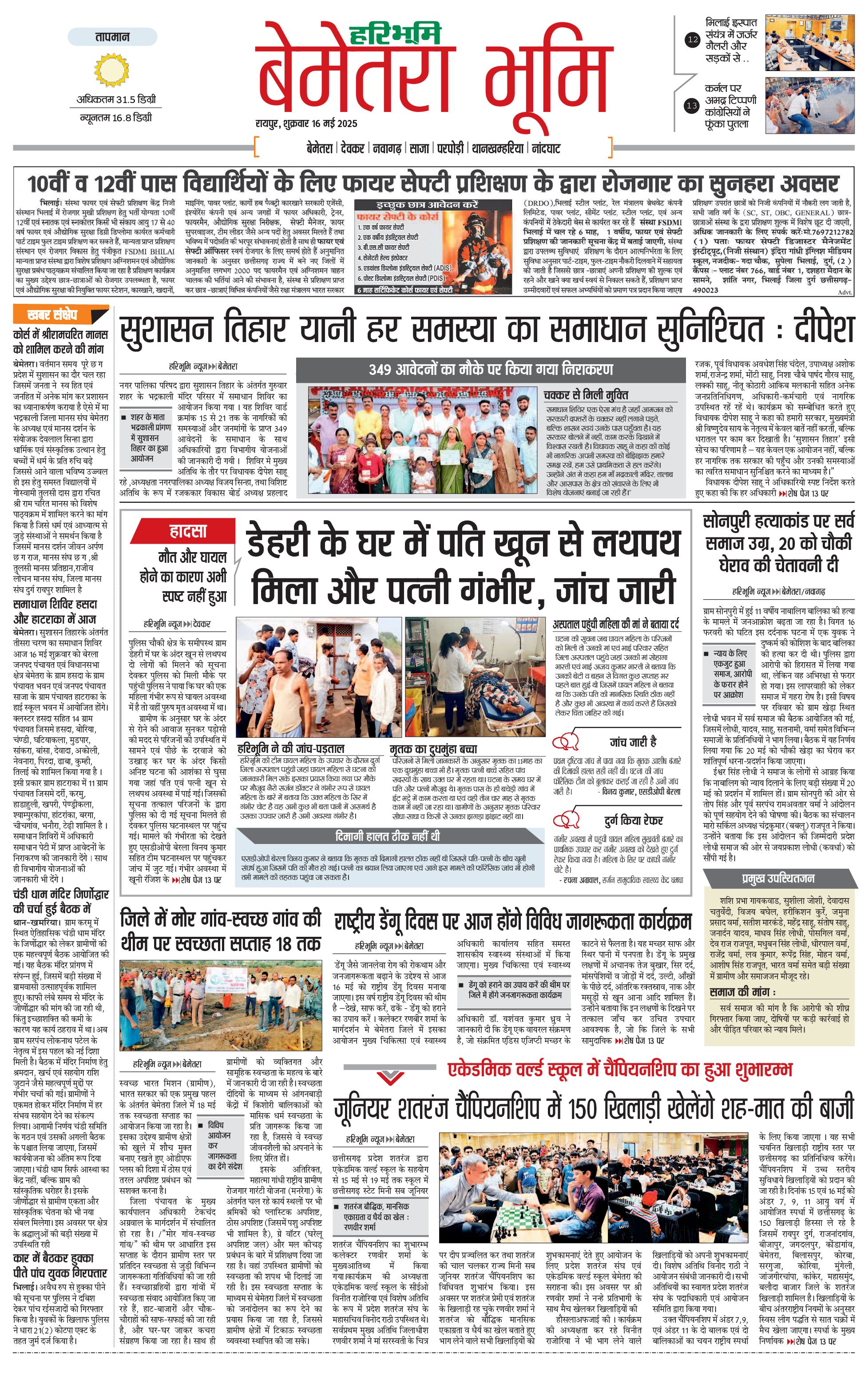 बेमेतरा भूमि - 16 May 2025 - - Page 1
