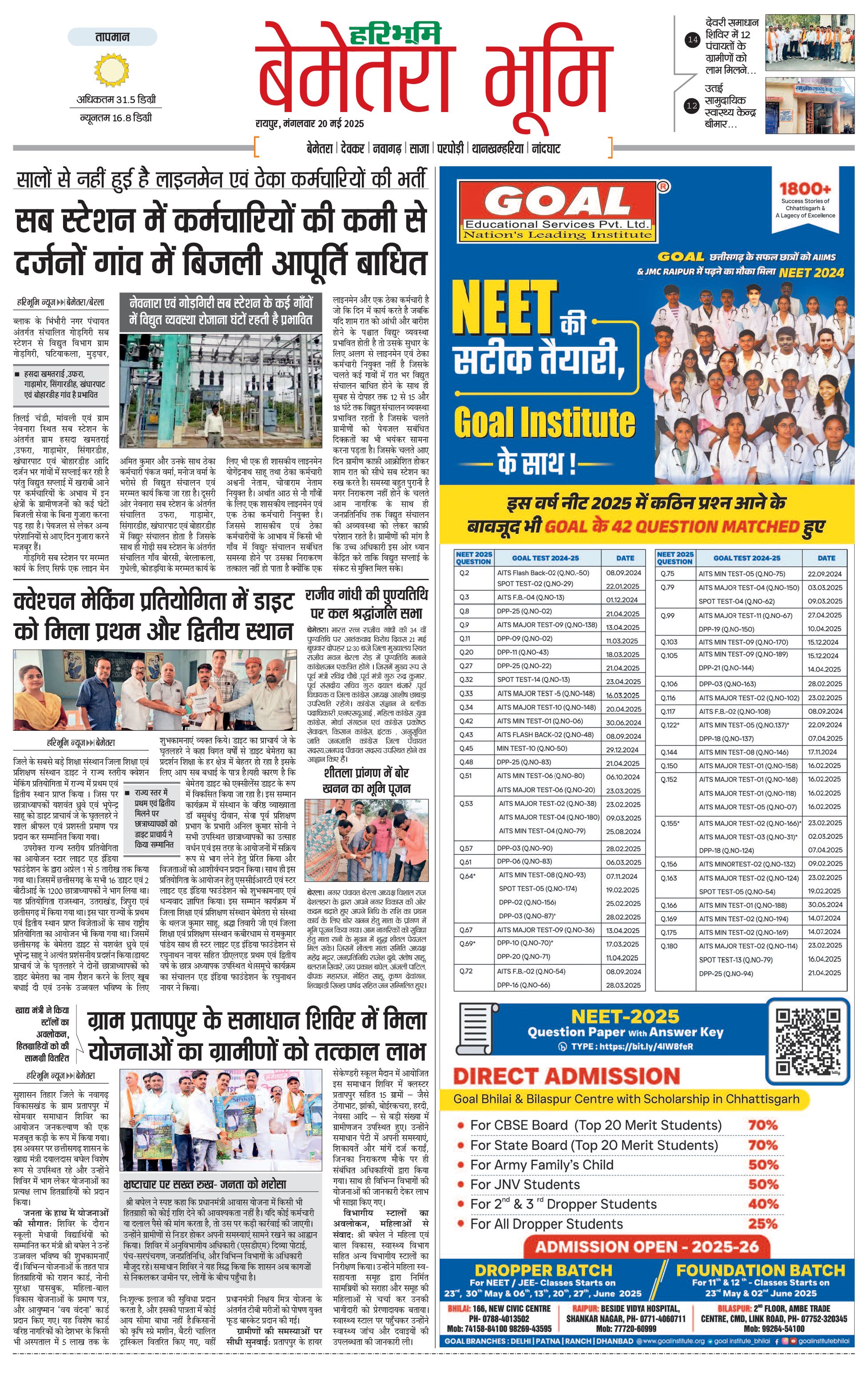 बेमेतरा भूमि - 20 May 2025 - - Page 1