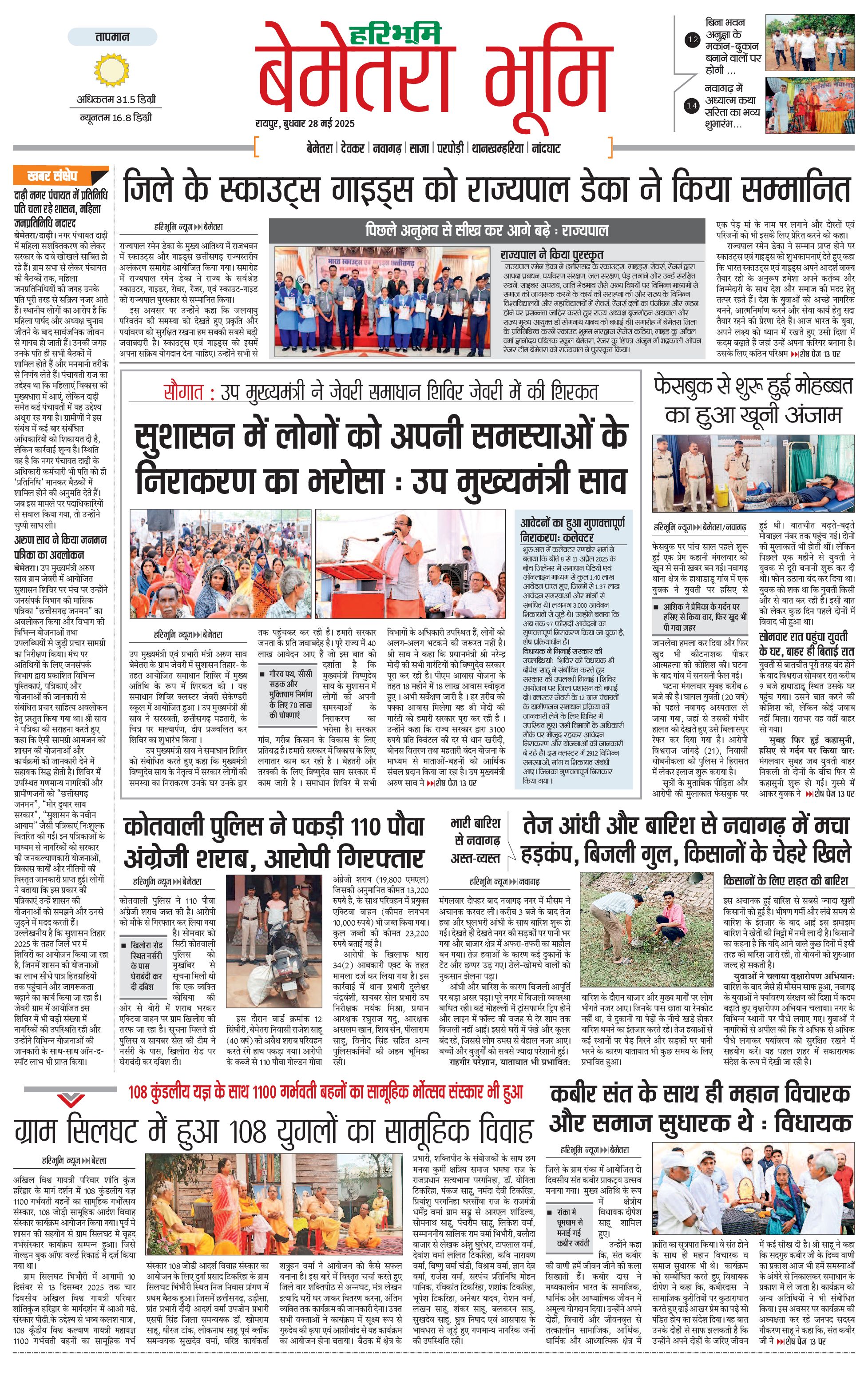 बेमेतरा भूमि - 28 May 2025 - - Page 1