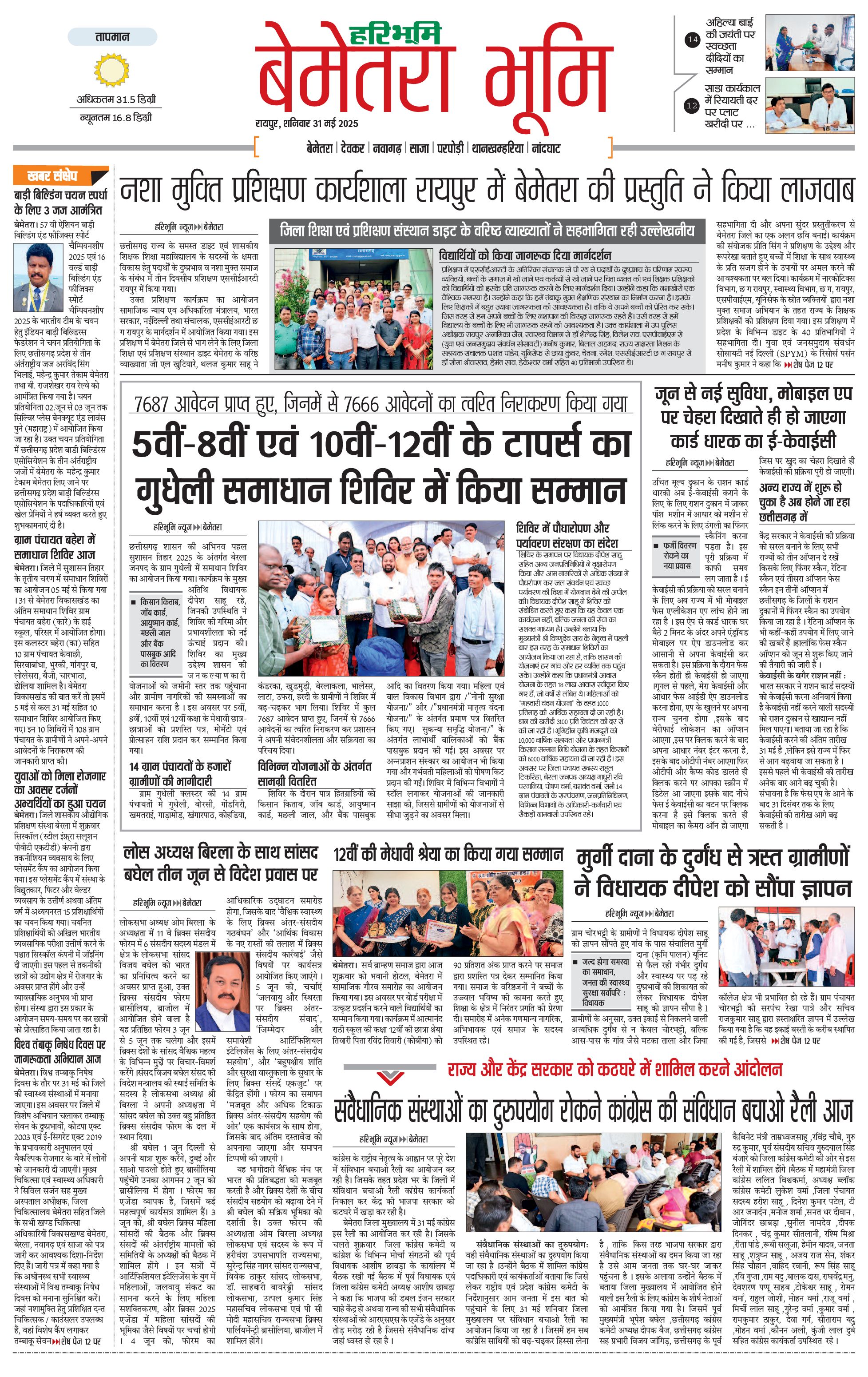 बेमेतरा भूमि - 31 May 2025 - - Page 1