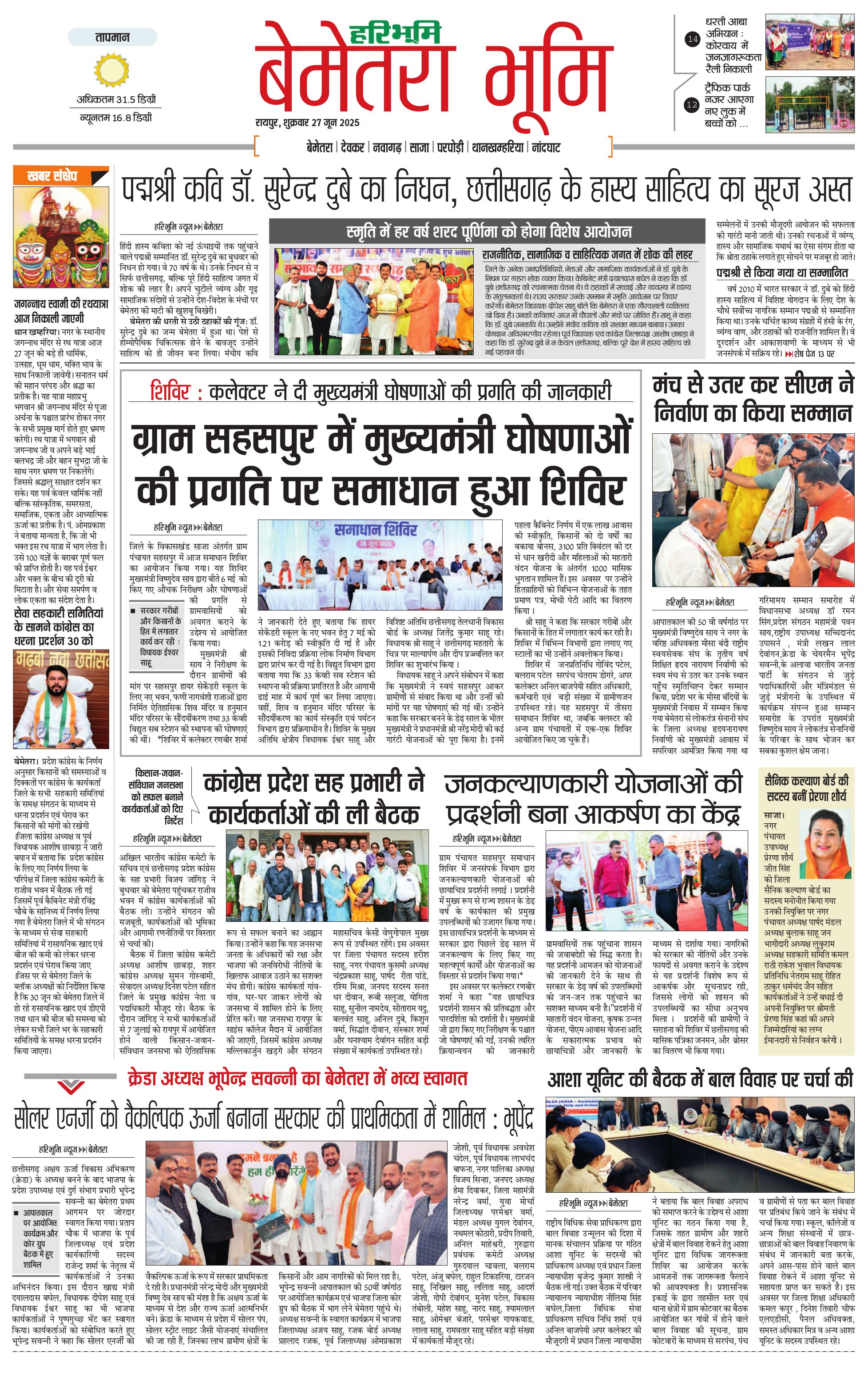 बेमेतरा भूमि - 27 Jun 2025 - - Page 1