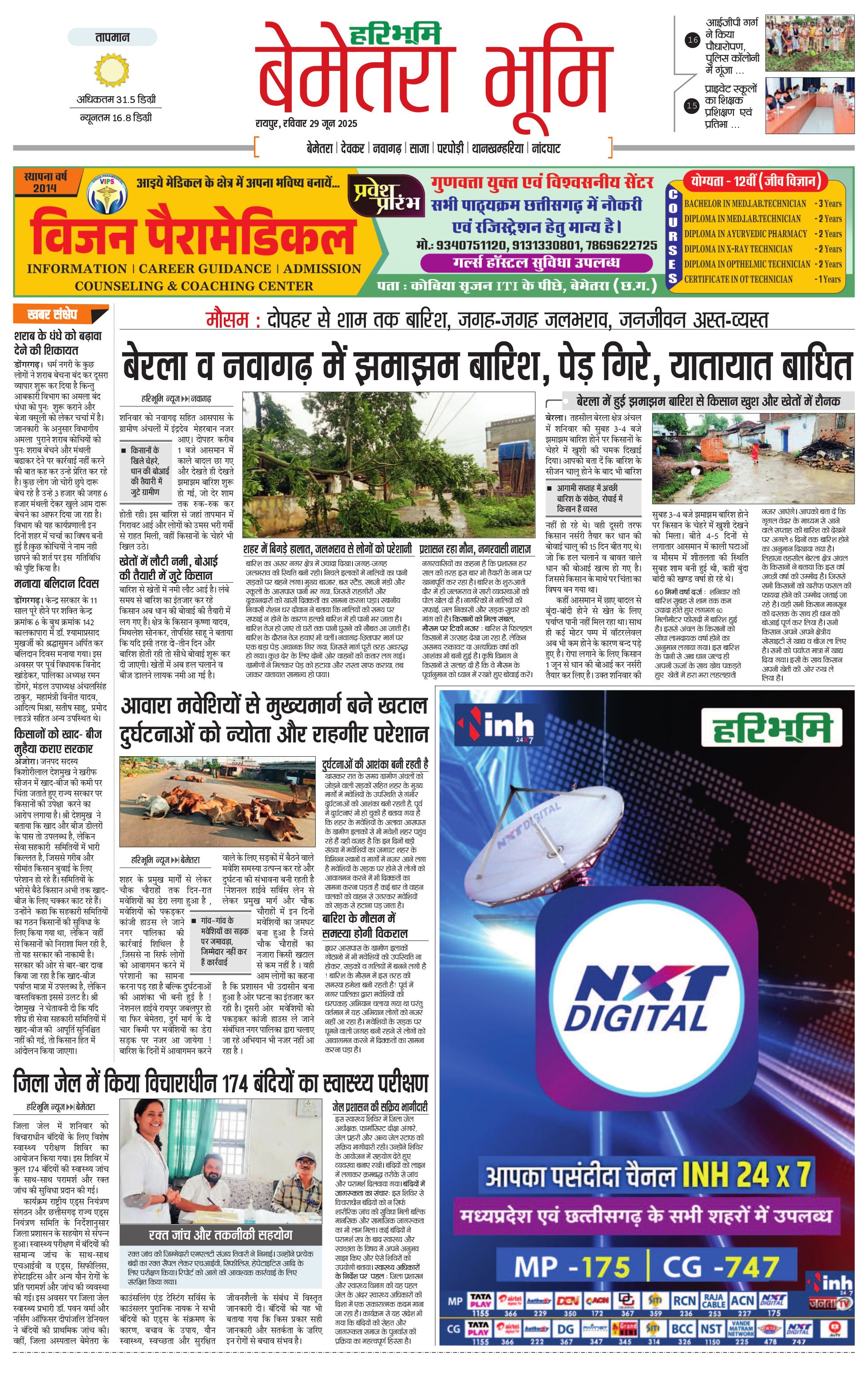 बेमेतरा भूमि - 29 Jun 2025 - - Page 1