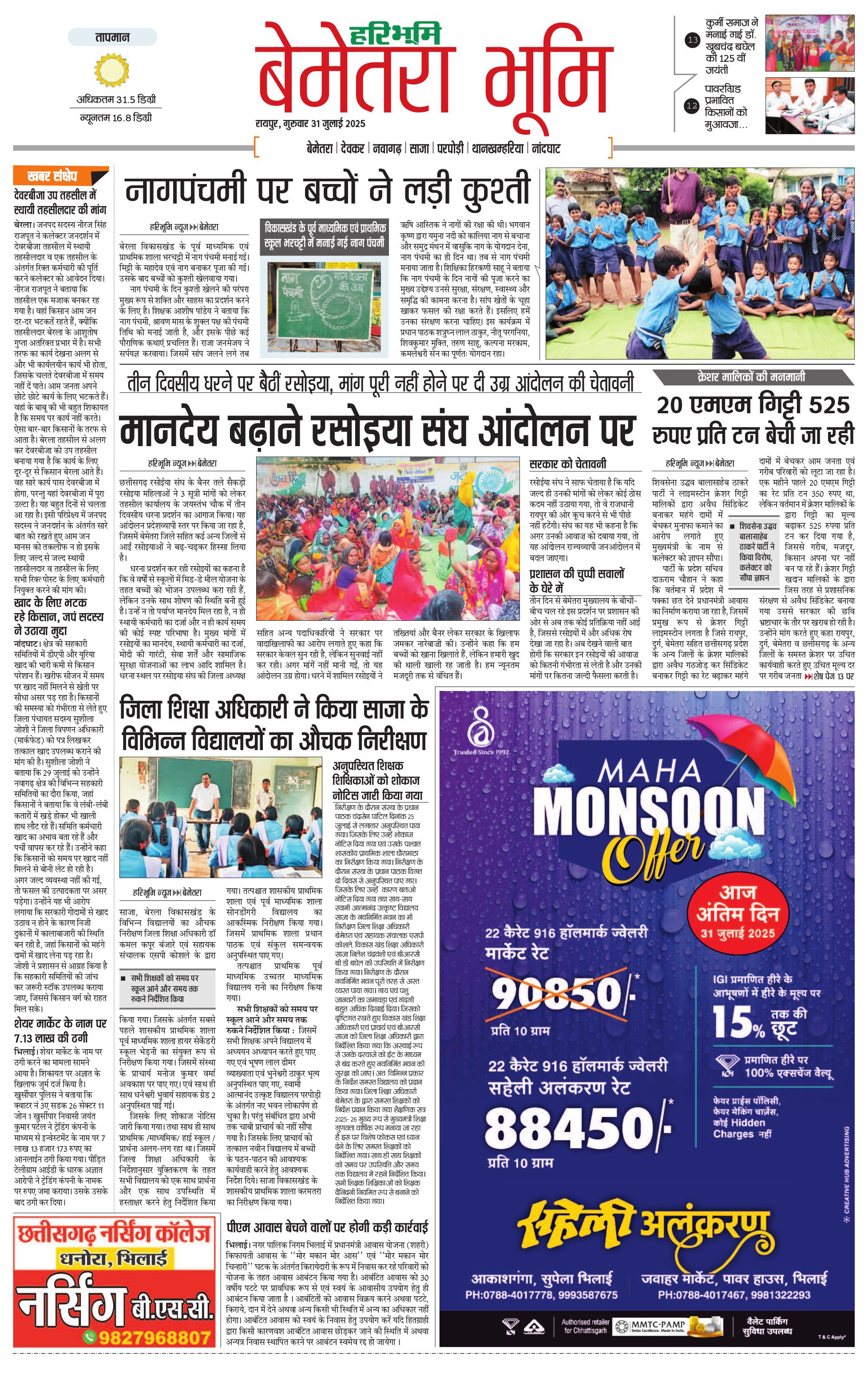 बेमेतरा भूमि - 30 Jul 2025 - - Page 1