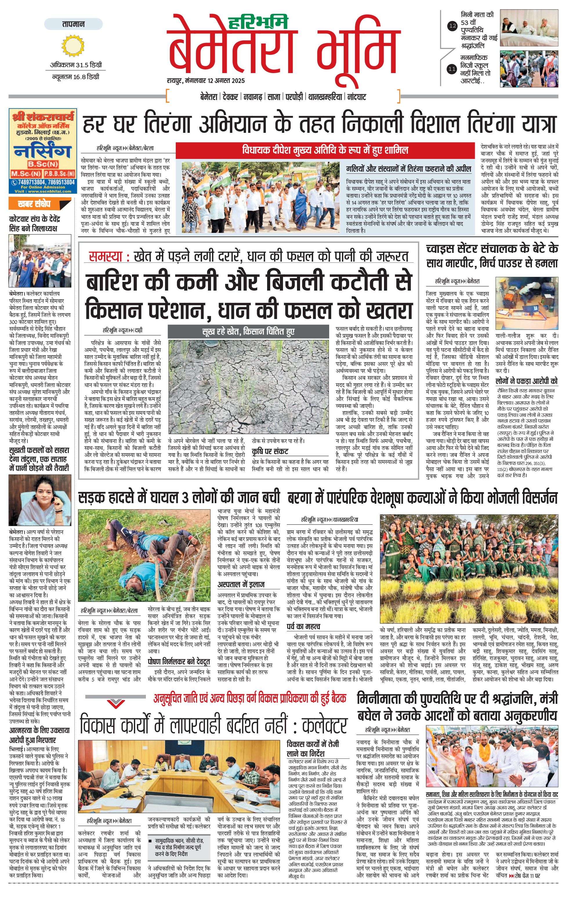 बेमेतरा भूमि - 12 Aug 2025 - - Page 1