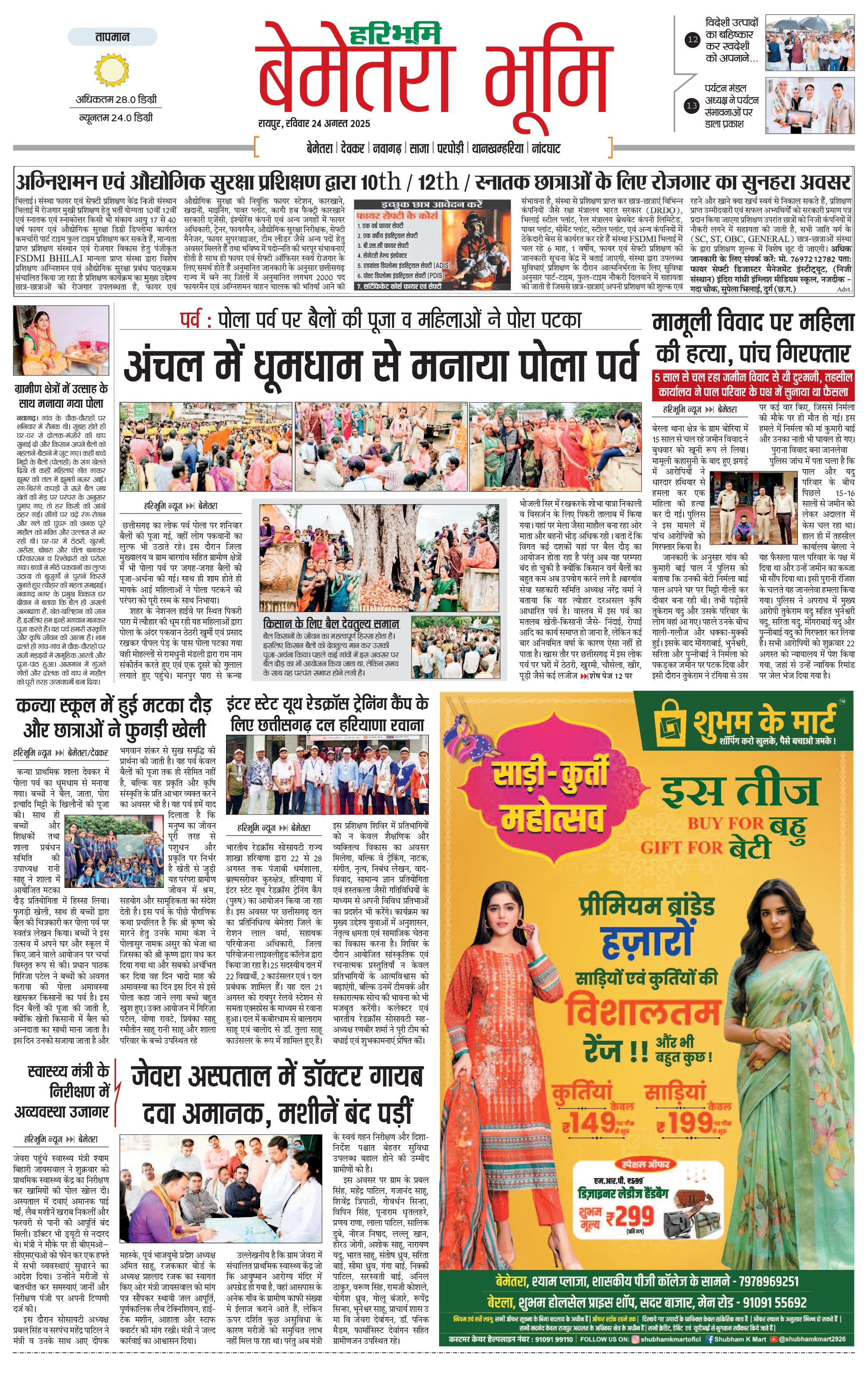 बेमेतरा भूमि - 24 Aug 2025 - - Page 1