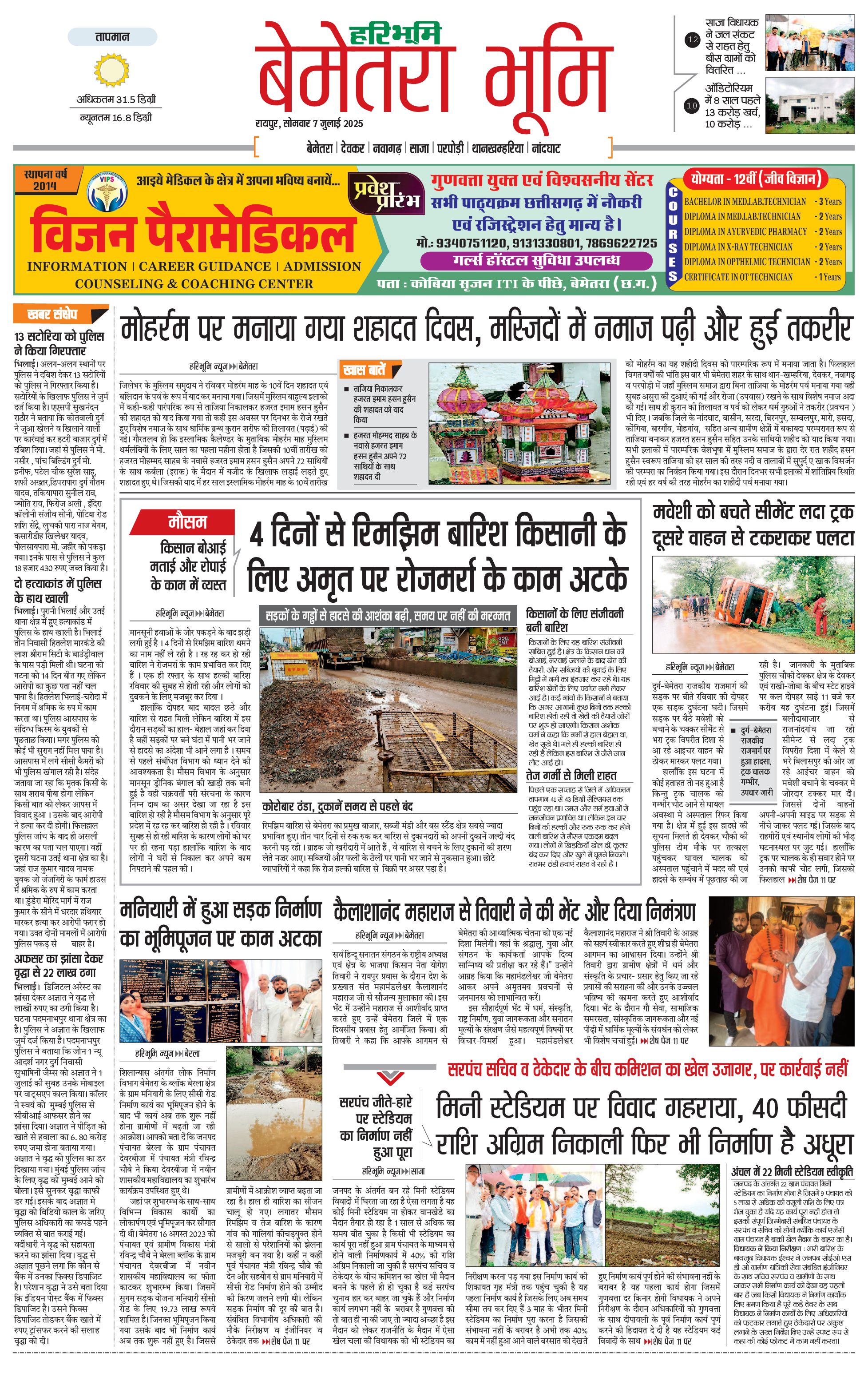 बेमेतरा भूमि - 07 Jul 2025 - - Page 1