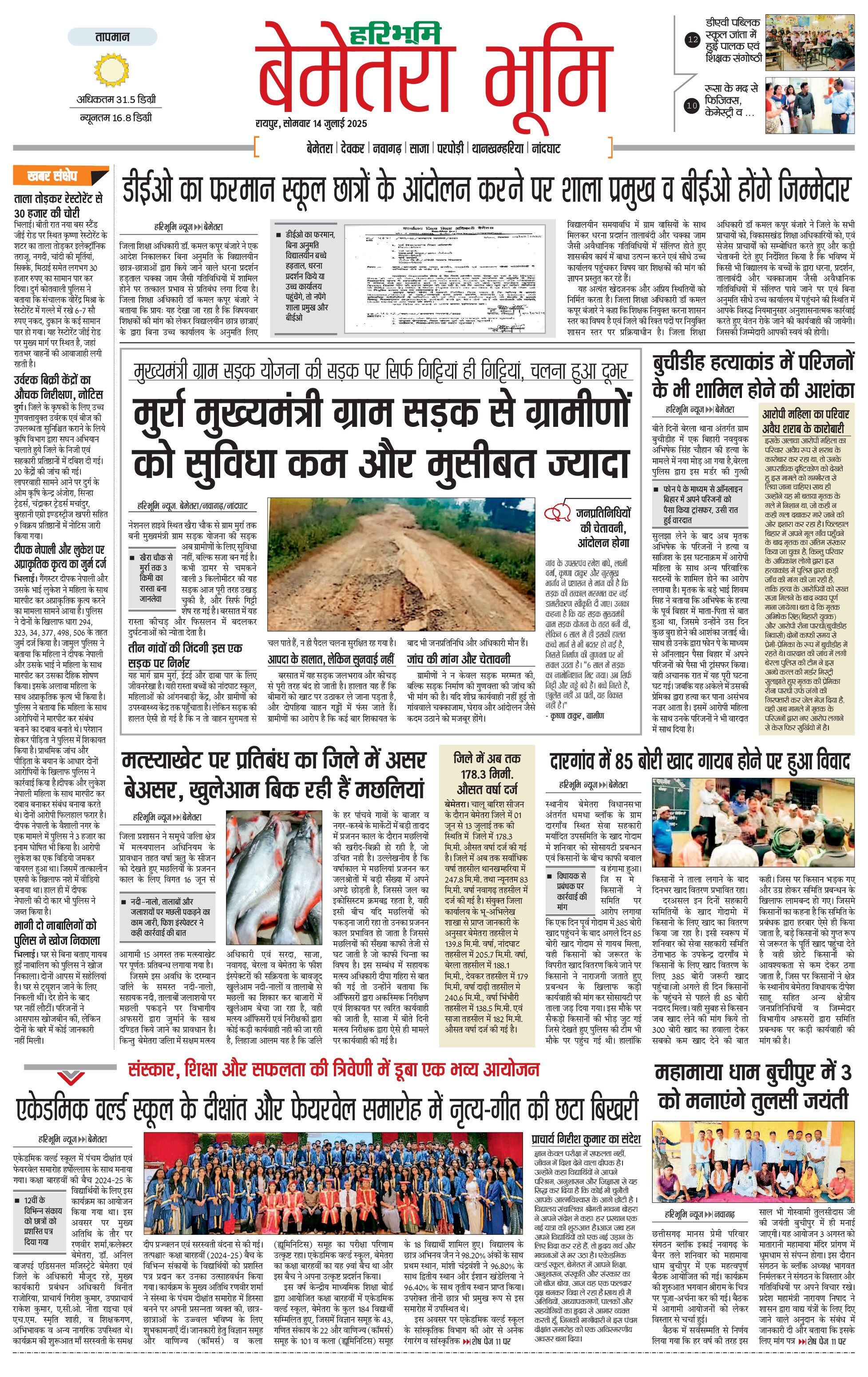बेमेतरा भूमि - 14 Jul 2025 - - Page 1