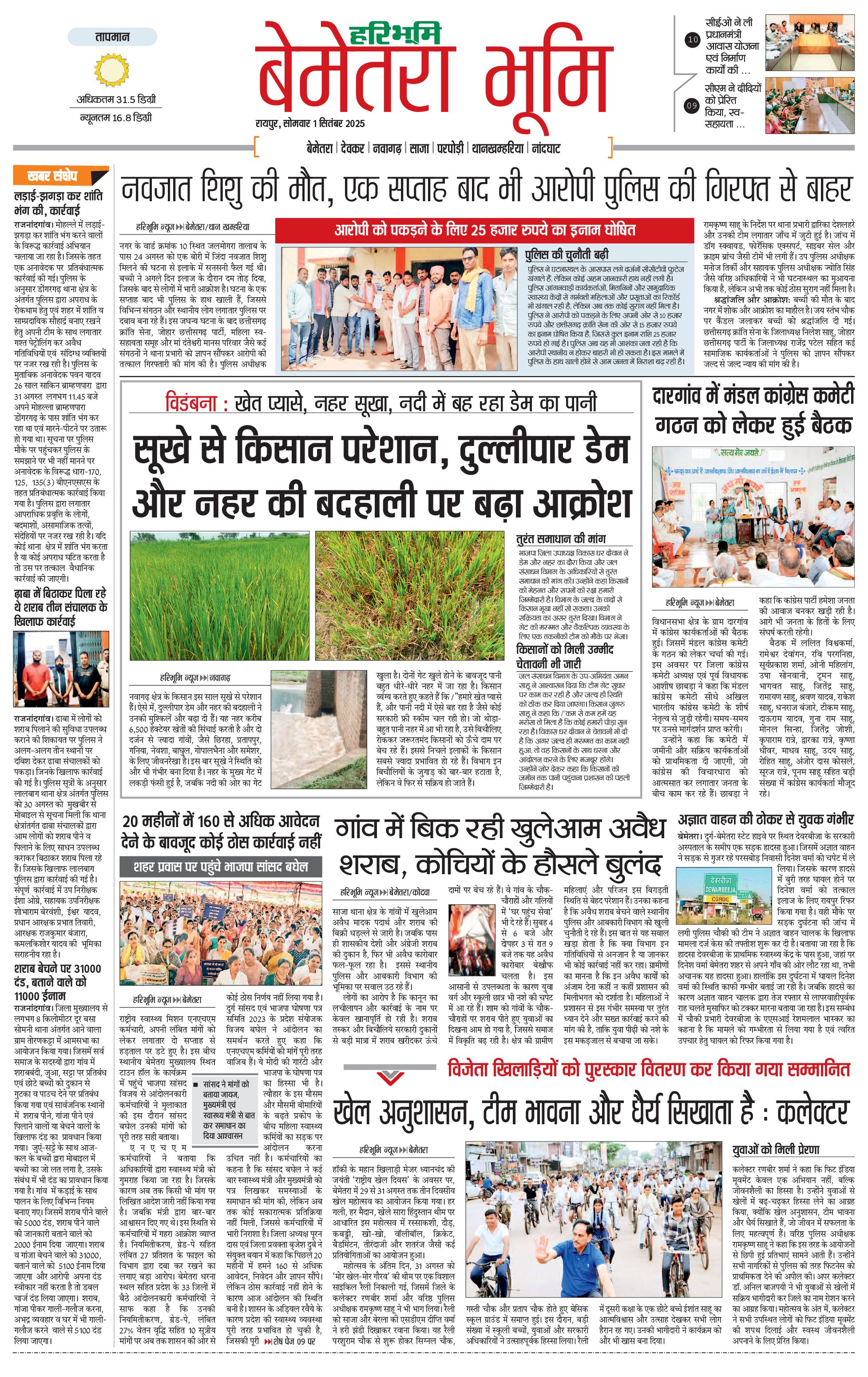 बेमेतरा भूमि - 01 Sep 2025 - - Page 1