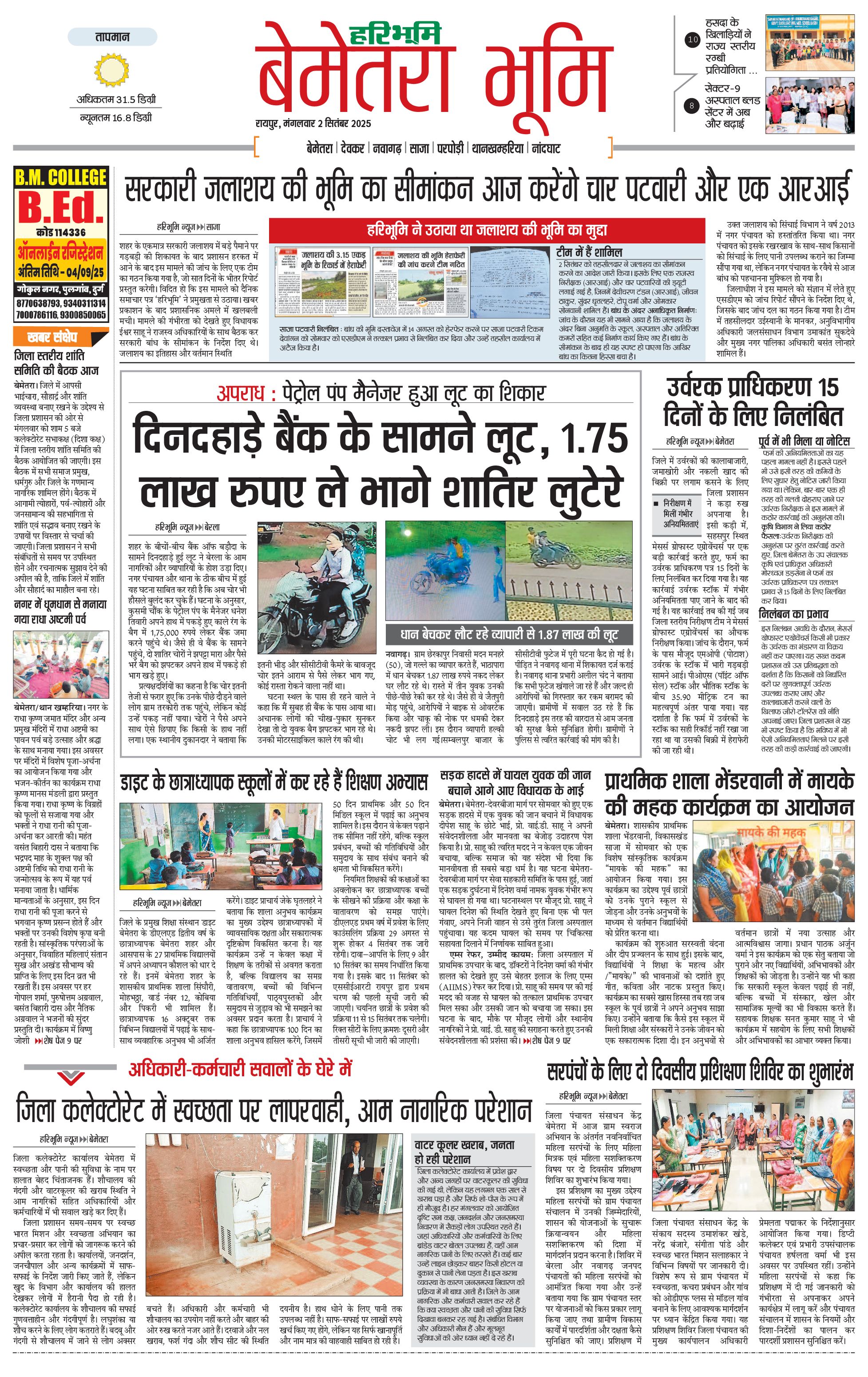 बेमेतरा भूमि - 02 Sep 2025 - - Page 1