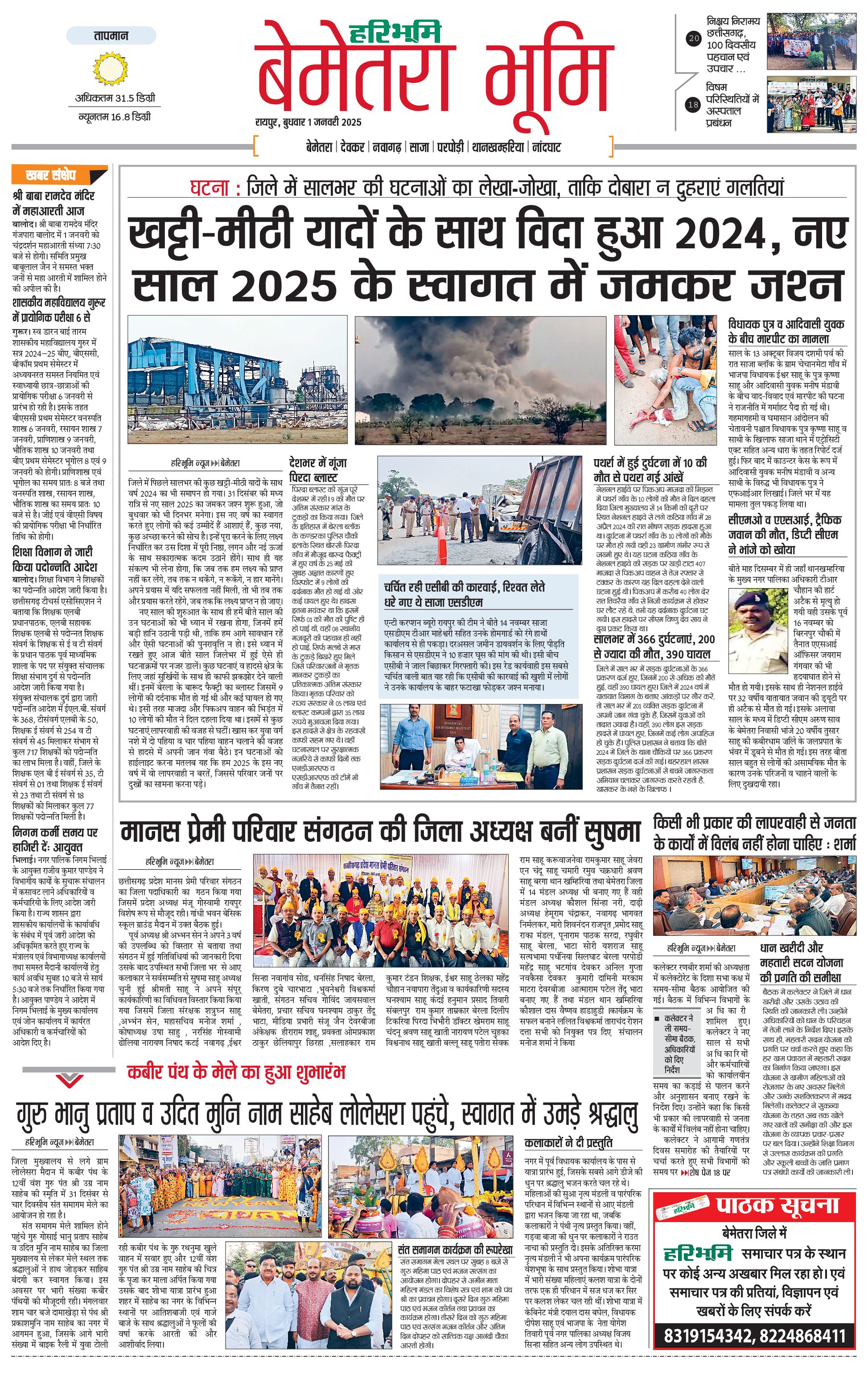 बेमेतरा भूमि - 01 Jan 2025 - - Page 1