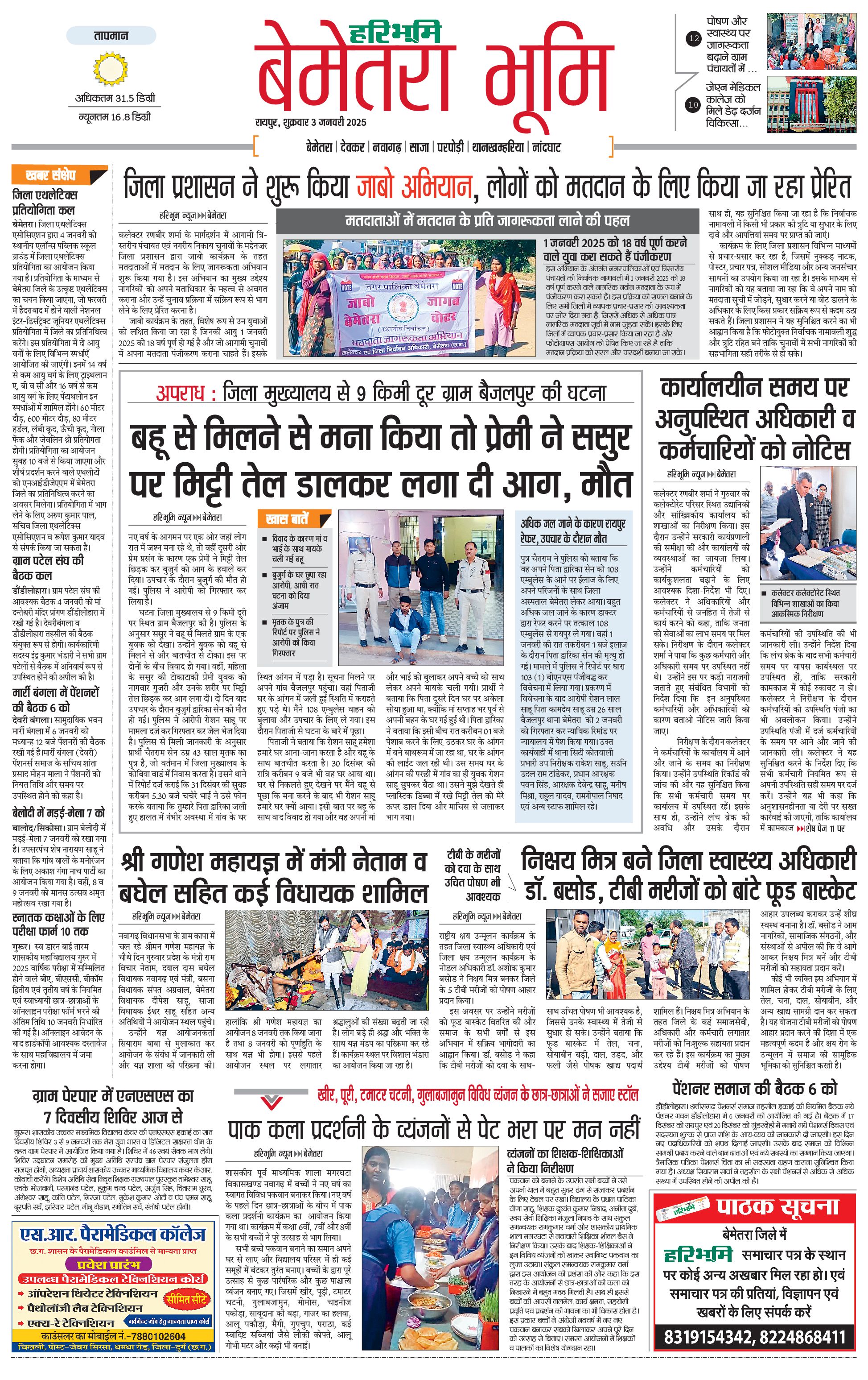 बेमेतरा भूमि - 03 Jan 2025 - - Page 1