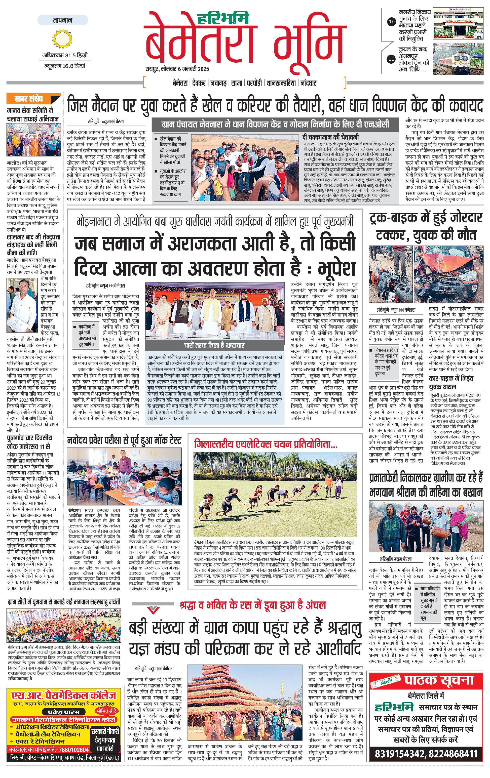 बेमेतरा भूमि - 06 Jan 2025 - - Page 1