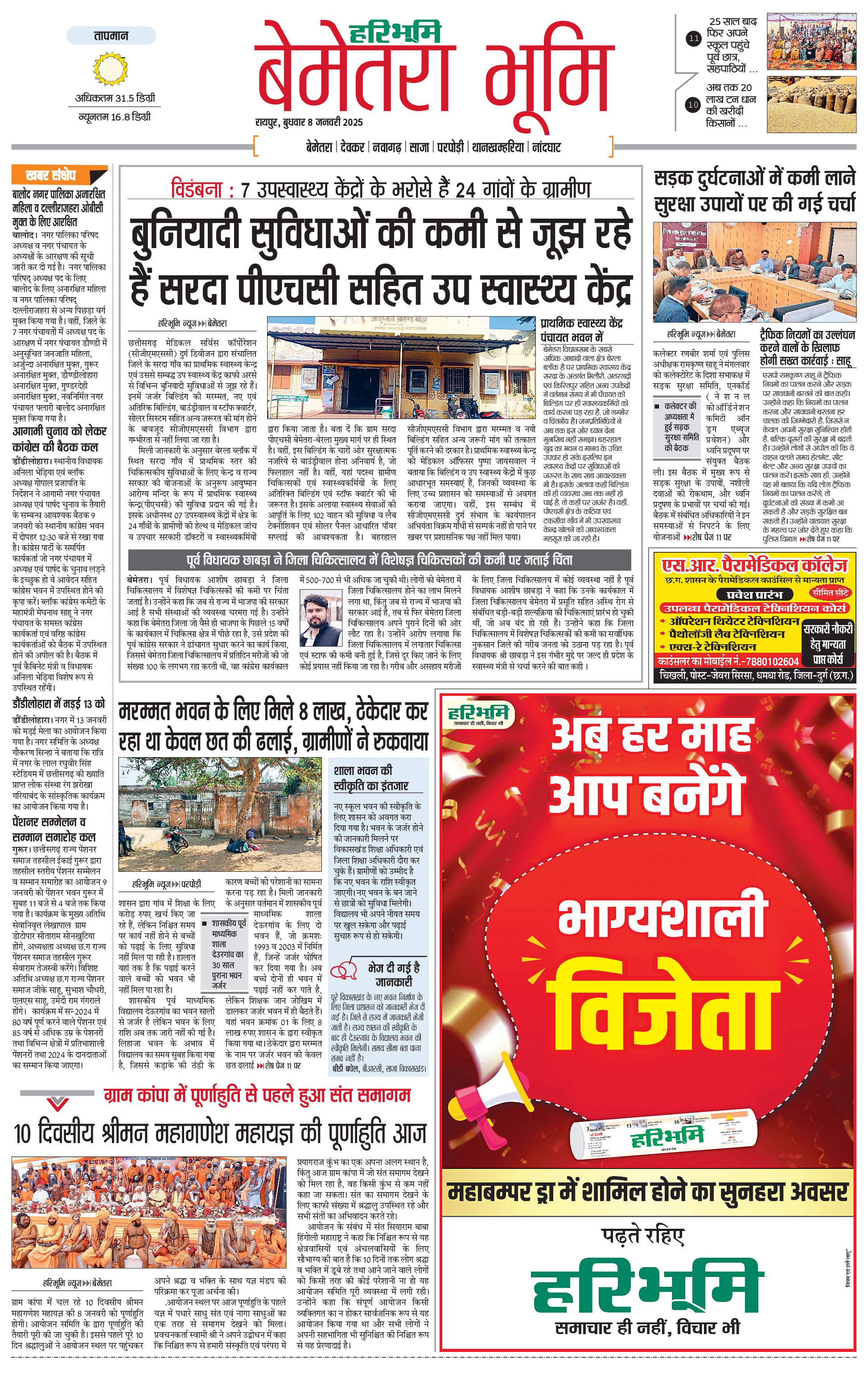 बेमेतरा भूमि - 08 Jan 2025 - - Page 1