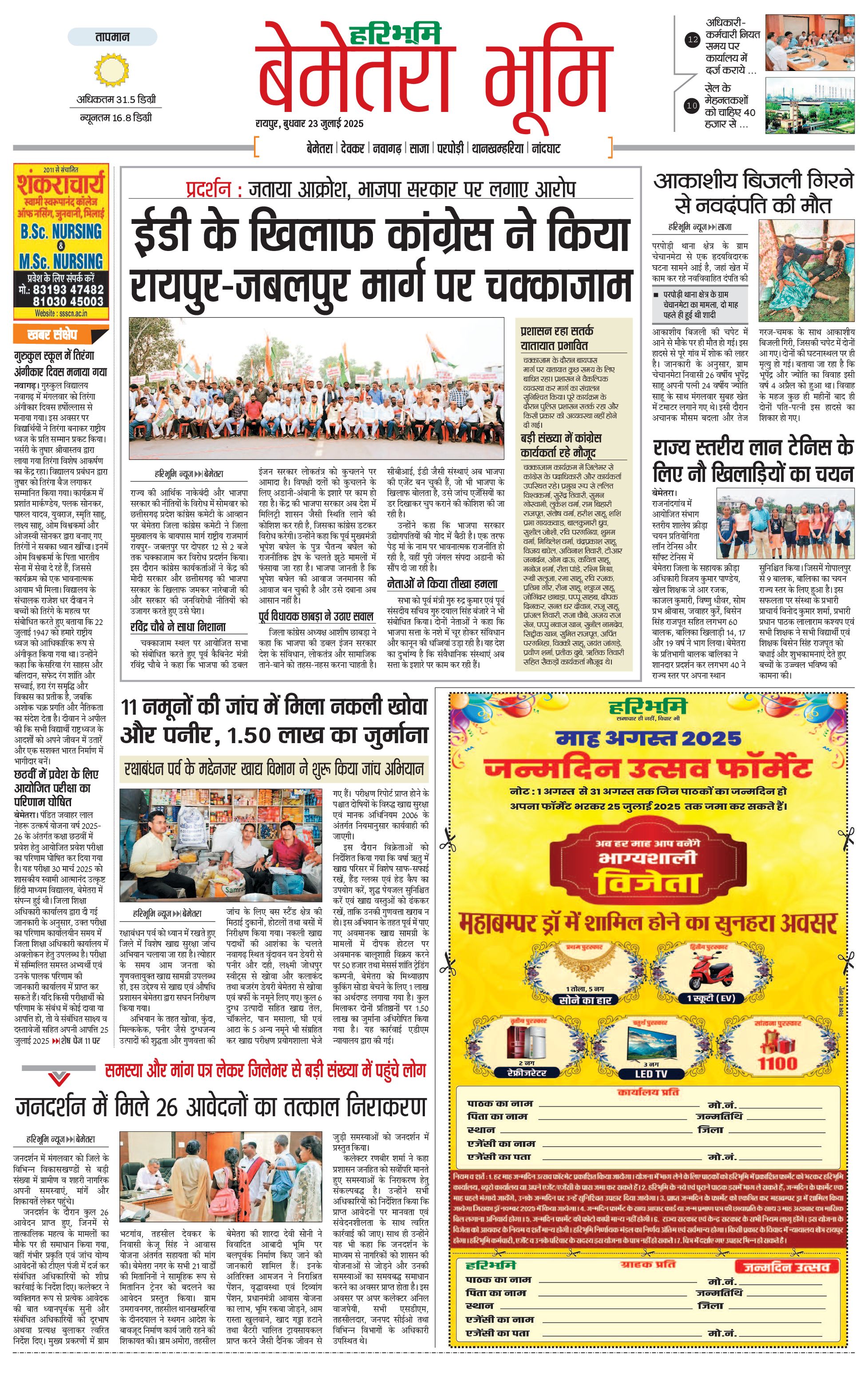 बेमेतरा भूमि - 23 Jul 2025 - - Page 1