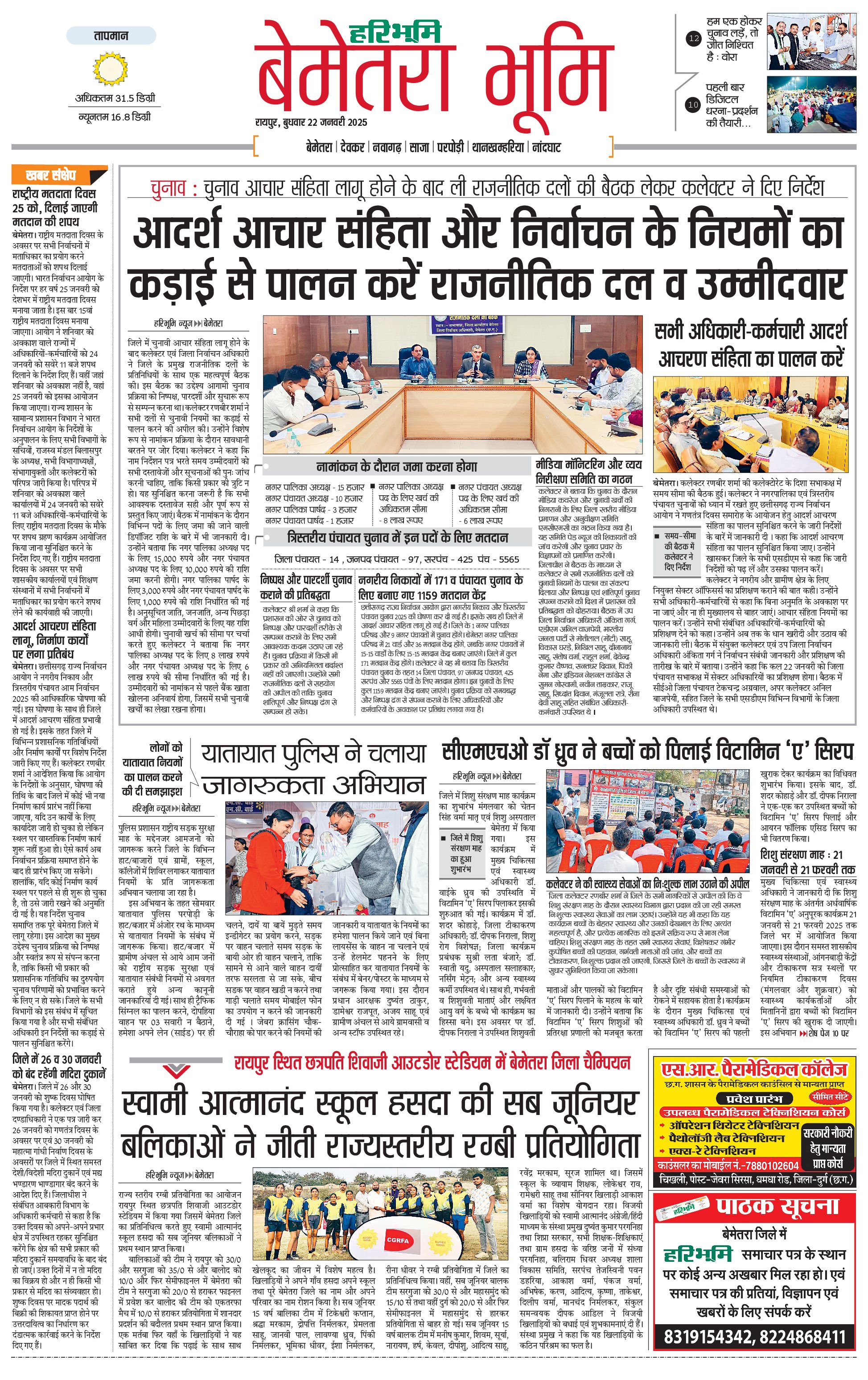 बेमेतरा भूमि - 22 Jan 2025 - - Page 1