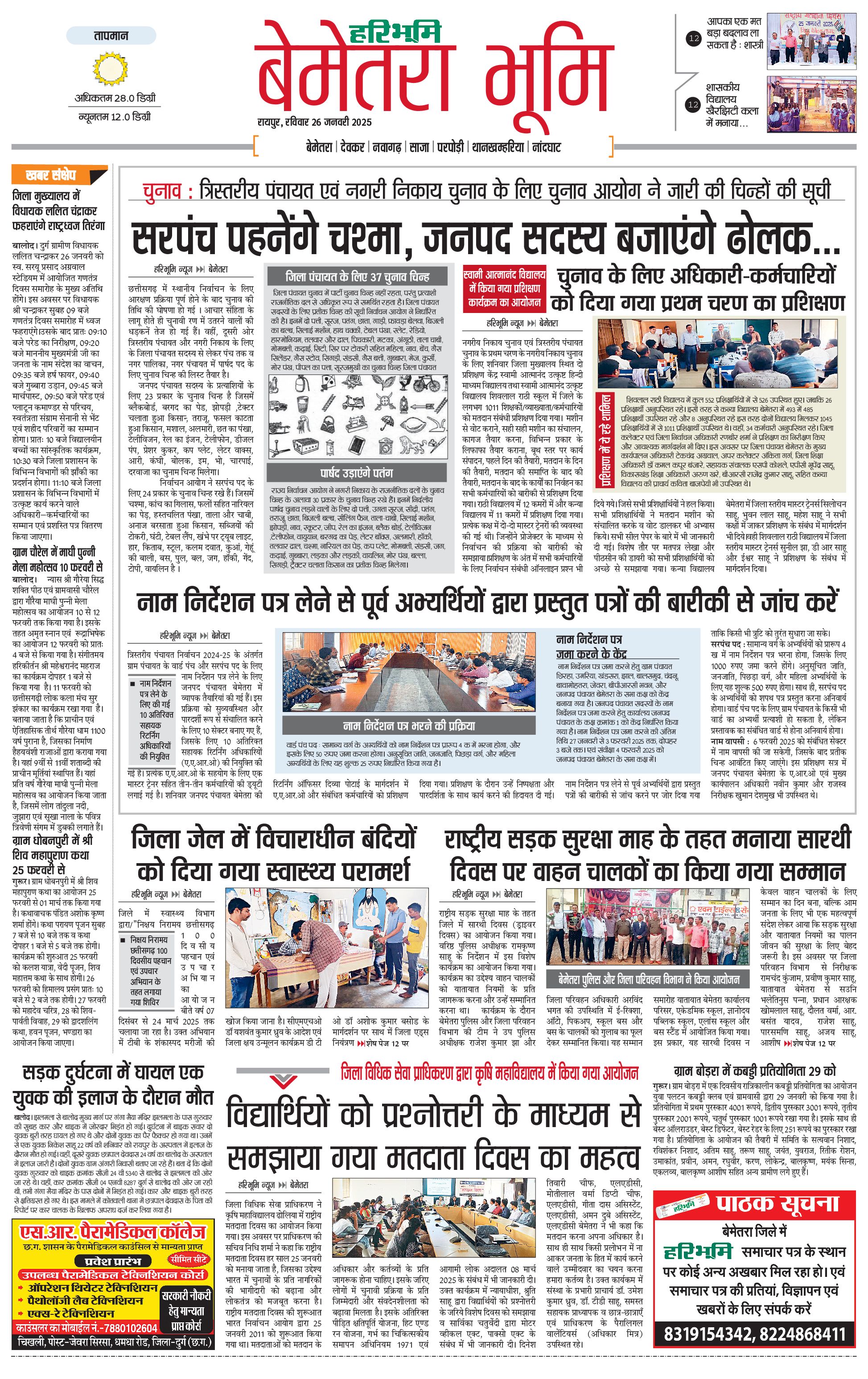 बेमेतरा भूमि - 26 Jan 2025 - - Page 1