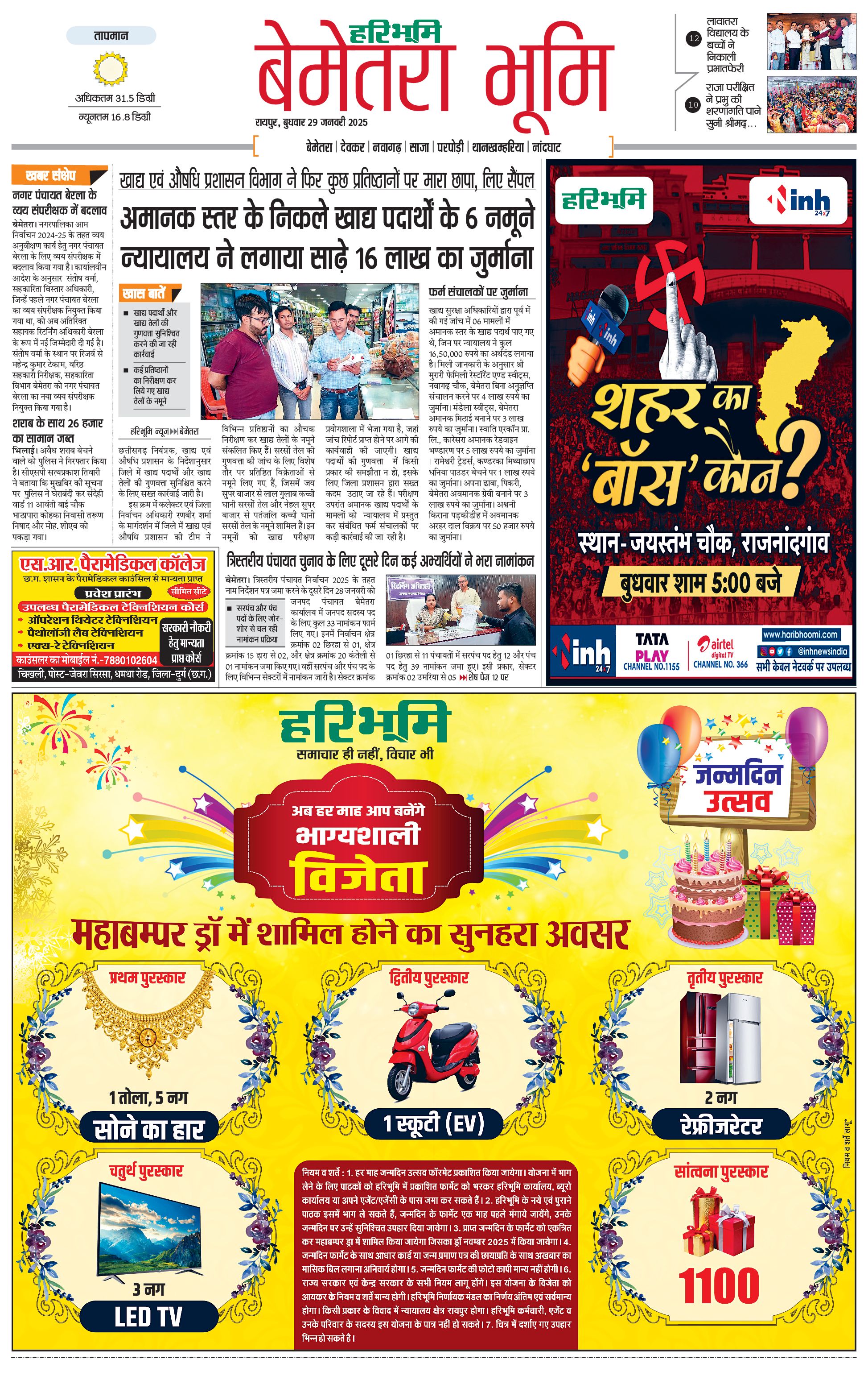 बेमेतरा भूमि - 29 Jan 2025 - - Page 1