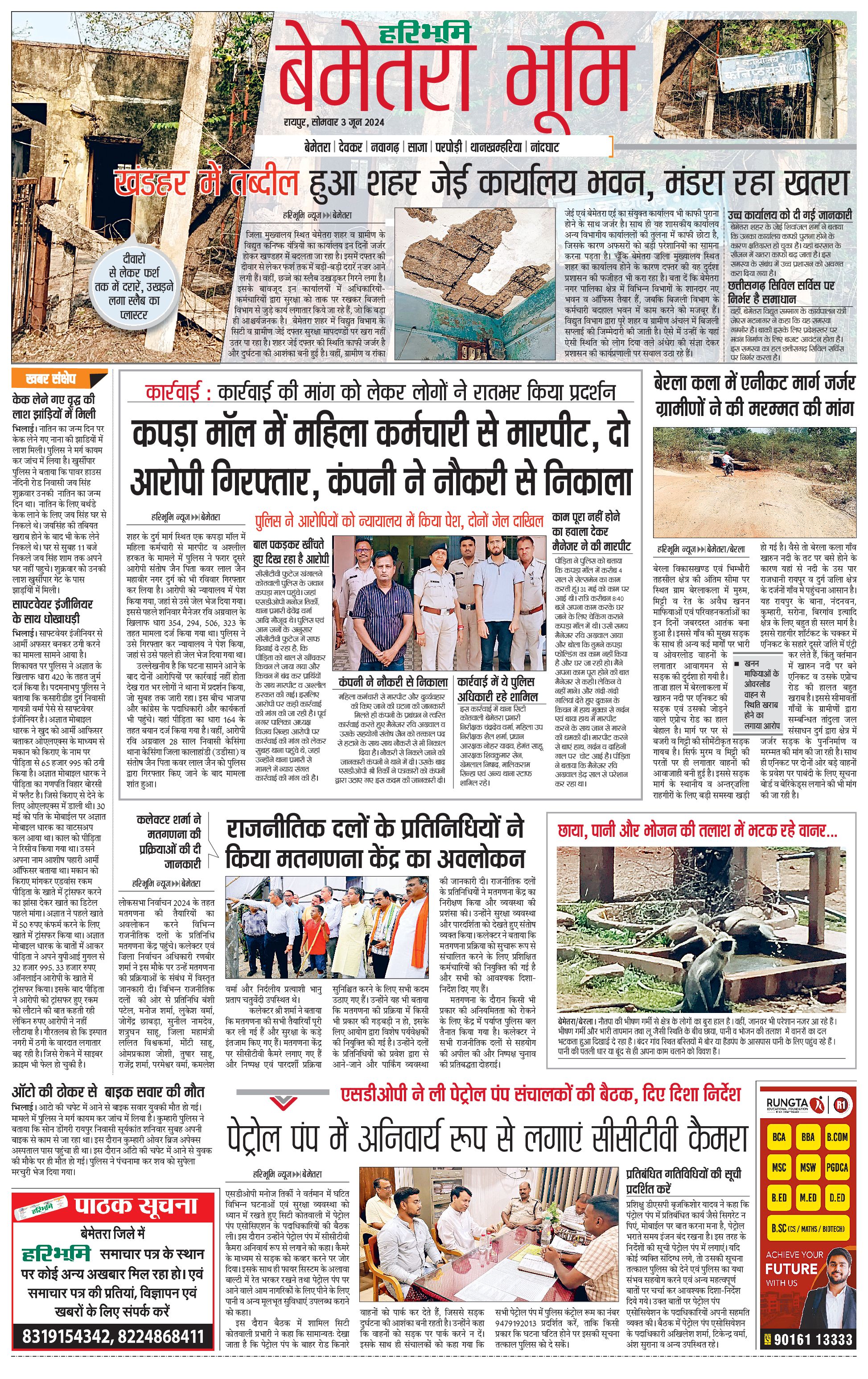 बेमेतरा भूमि - 03 Jun 2024 - - Page 1