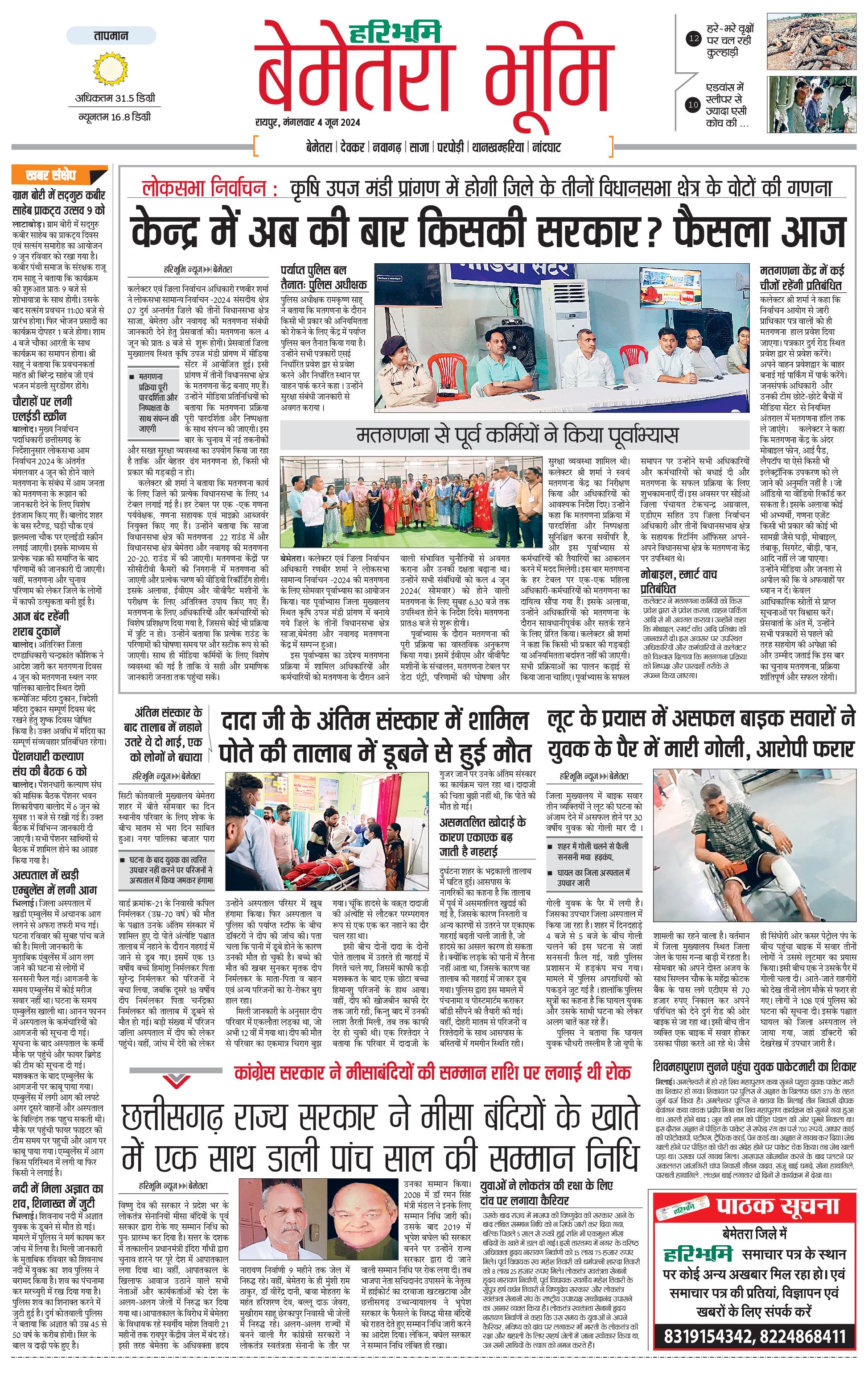 बेमेतरा भूमि - 04 Jun 2024 - - Page 1