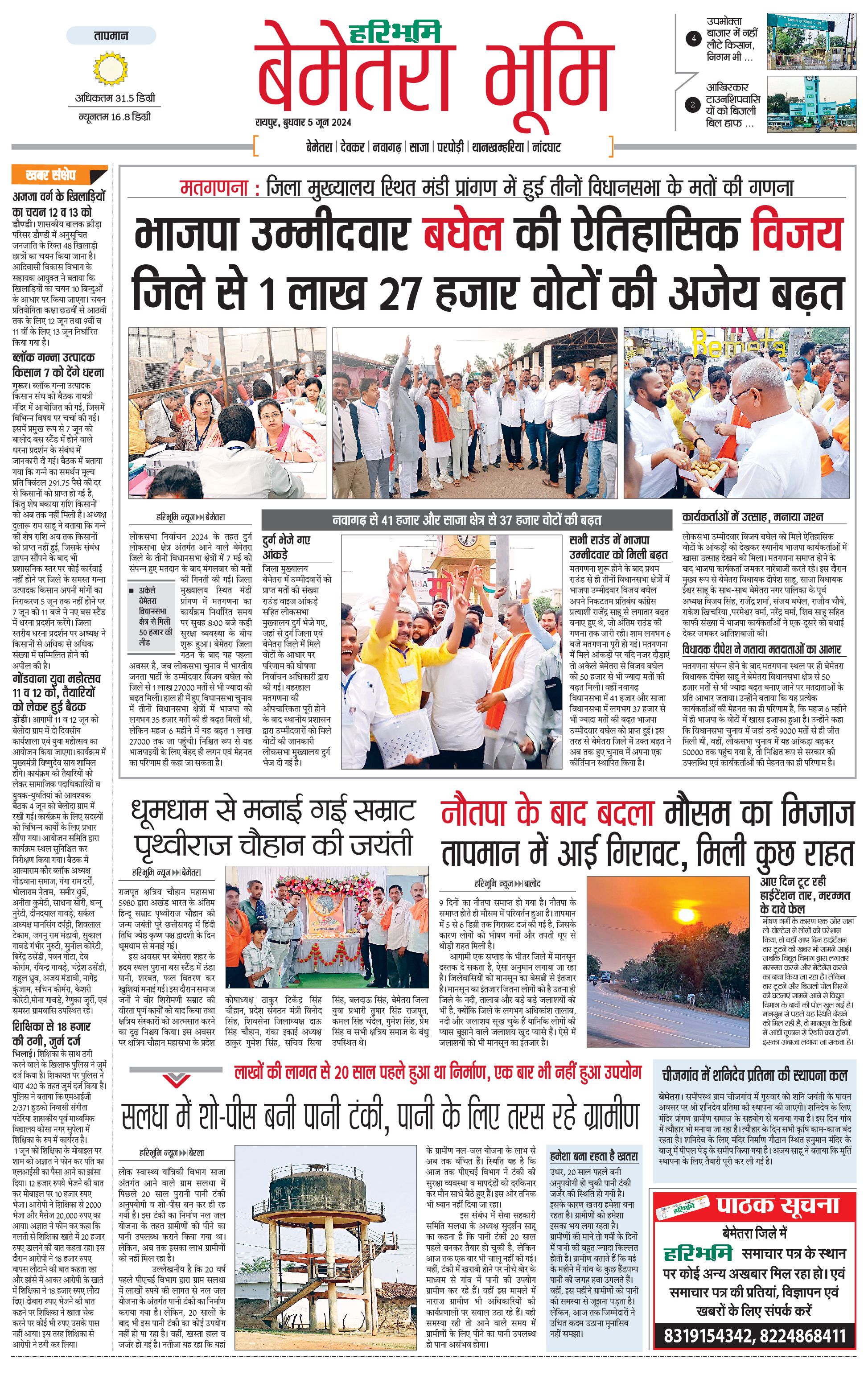 बेमेतरा भूमि - 05 Jun 2024 - - Page 1
