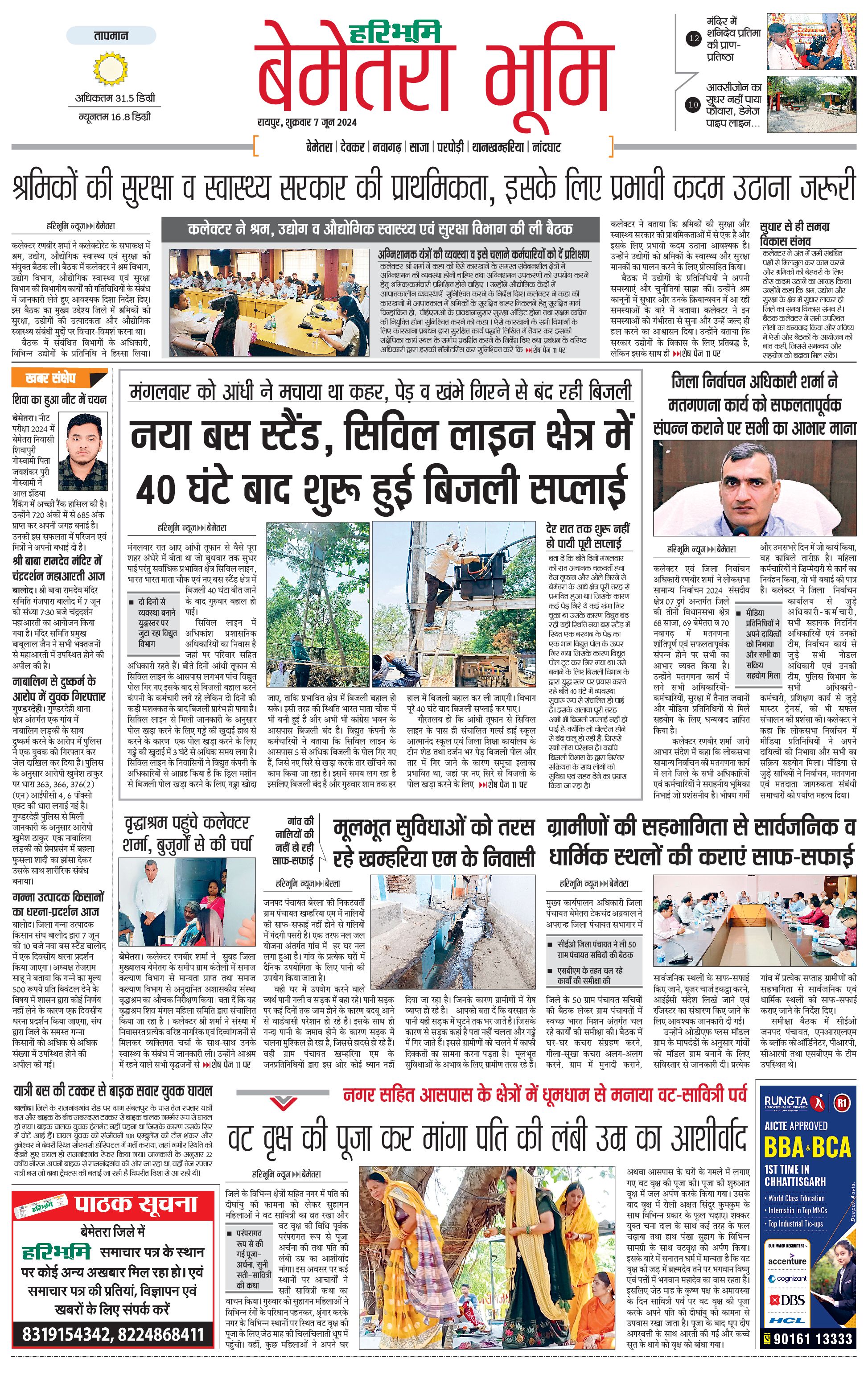 बेमेतरा भूमि - 07 Jun 2024 - - Page 1