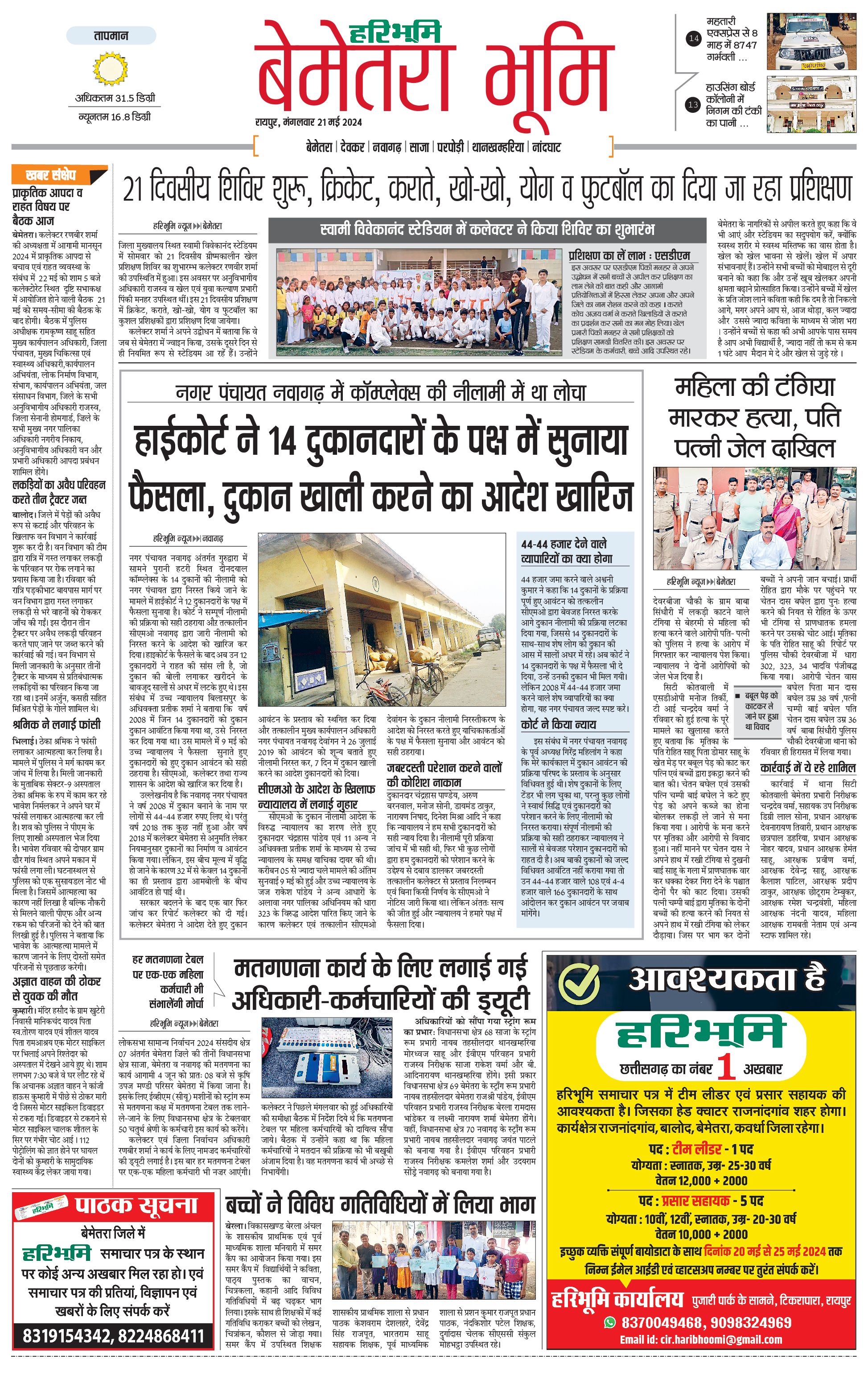 बेमेतरा भूमि - 21 May 2024 - - Page 1