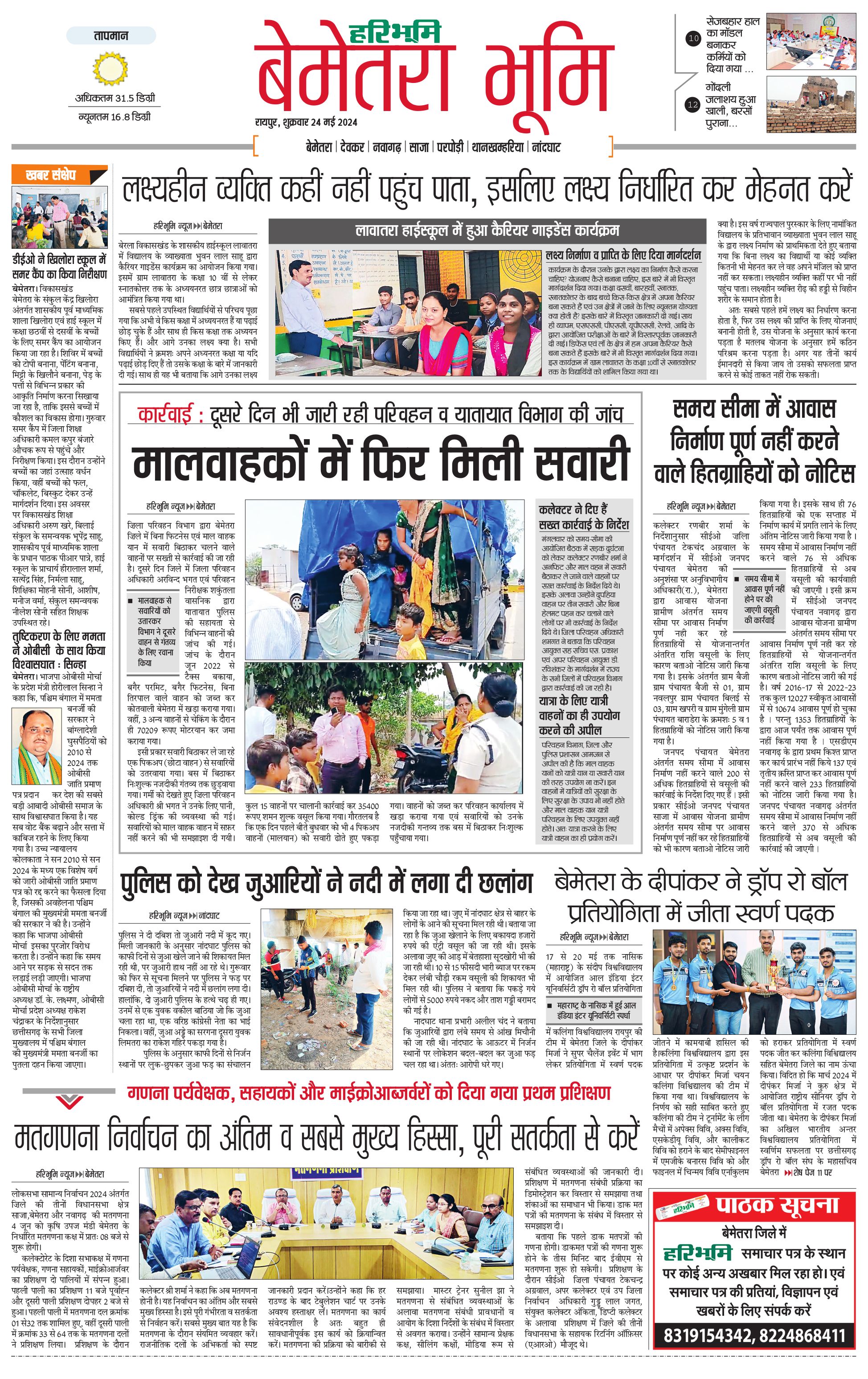 बेमेतरा भूमि - 24 May 2024 - - Page 1